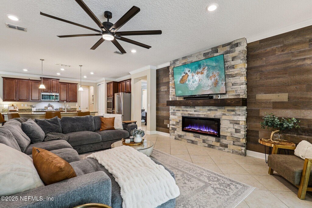 Welcome to 291 Saint Kitts Loop,a beautifully maintained home in the desirable Windward Ranch community of St. Augustine. This spacious residence offers an inviting open-concept layout with thoughtful upgrades throughout. The living area centers around a stunning electric fireplace,creating the perfect spot for cozy evenings at home. The kitchen flows seamlessly into the dining and living spaces,ideal for entertaining,while the updated laundry room adds both function and style to your daily routine. Step outside to enjoy an extended back paver patio,designed for gatherings,cookouts,or simply relaxing in the Florida sunshine. Located in a gated community with resort-style amenities,this home combines comfort,convenience,and modern touches in one perfect package.