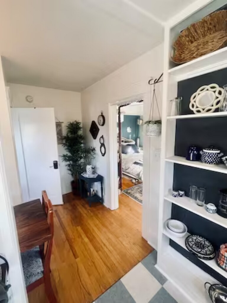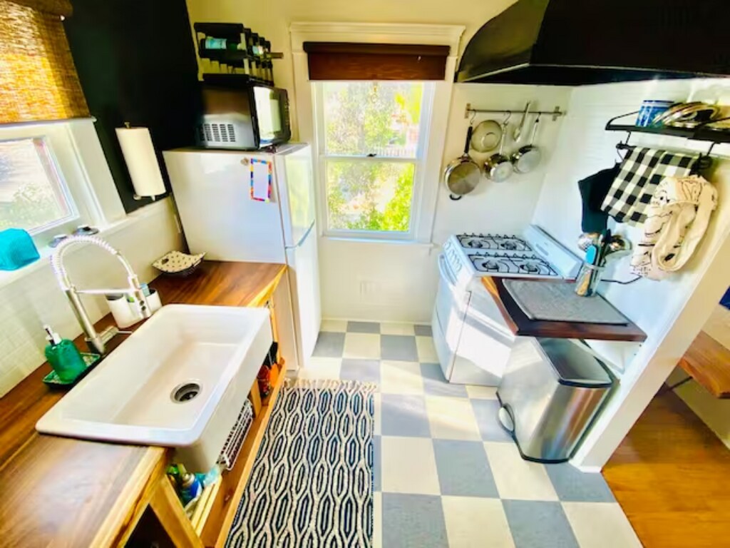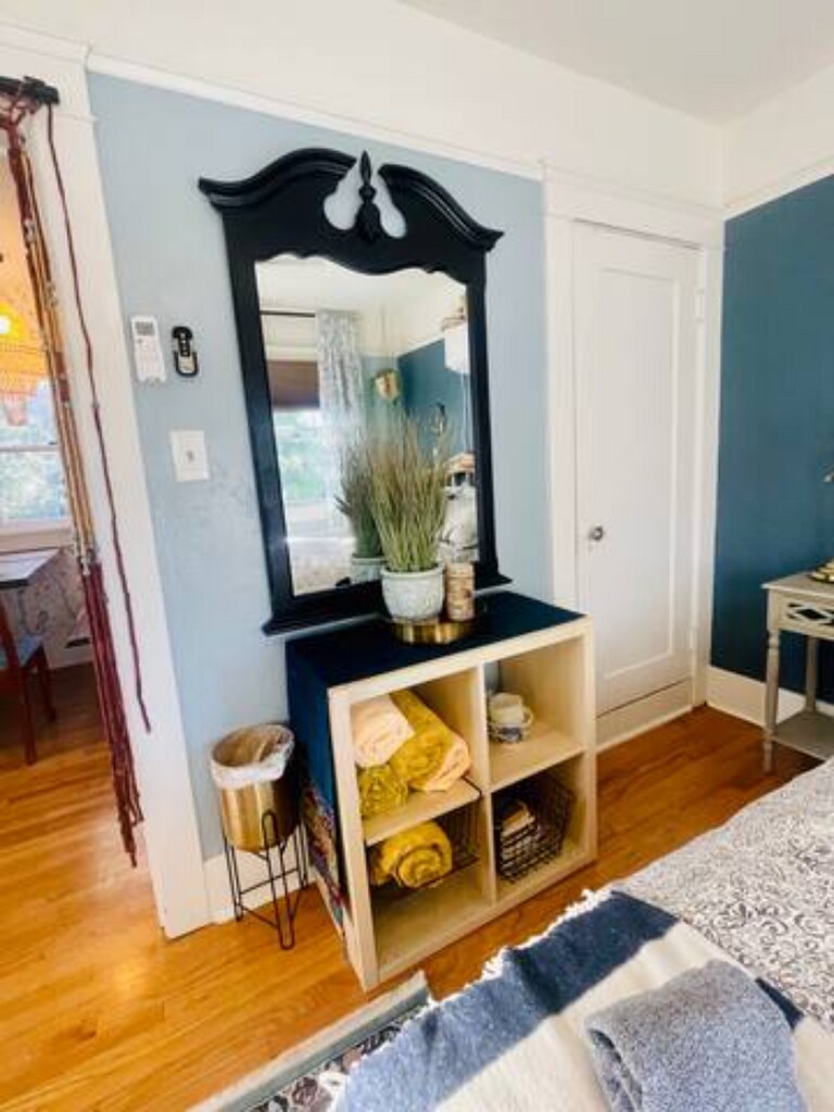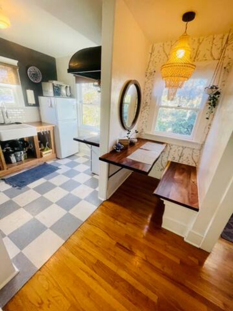 South Park: 2 story Detached Carriage House upper and lower unit Our 2BR/2BA Carriage House is nestled in the heart of South Park, walking distance to fabulous restaurants, shops, art studios, and so much more. South Park is one of San Diego's most sought-after neighborhoods, kind of a local's secret. This fully renovated, historic building is just a block away from Balboa Park and the best off-leash dog park in the city. The Carriage House is fully detached from the main house, and includes a private entrance and courtyard with patio furniture. The upstairs is a 1br/1ba with a full kitchen and the downstairs is a studio. We are renting both units as a whole. This is the original Carriage House to the main house. The main house has been featured in local and architectural magazines and has also been one of the featured tour houses on the “South Park Historic District Walking Tour.” It is highlighted for its unique, eclectic architectural design. Please inquire about articles of the home if you're interested. Most San Diegans will tell you that South Park is their dream neighborhood, and the Carriage House is situated in the heart of it all. Regardless of which direction you head, you will find something to enjoy within walking distance in just minutes. Balboa Park is just one block west of the property and Juniper square is just one block north, where bakeries, bistros, art studios, boutique shops, and quality dining can be enjoyed just an easy stroll away. The Carriage House is technically a granny flat/backhouse, yet it can be accessed directly from the street (no walking through to the back yard). Offering exceptional privacy, it has a private entrance, a private patio, and even boasts its own address. The private patio offers inviting features for hanging out outside. You can barbecue and enjoy outdoor dining on comfortable chairs and tables. String lights that come on at dusk will enchant you well into the evening. From this second story unit, the view from every window is breathtaking. You'll see gorgeous Jacaranda trees from the bedroom windows, and an intimate garden area from the kitchen window.