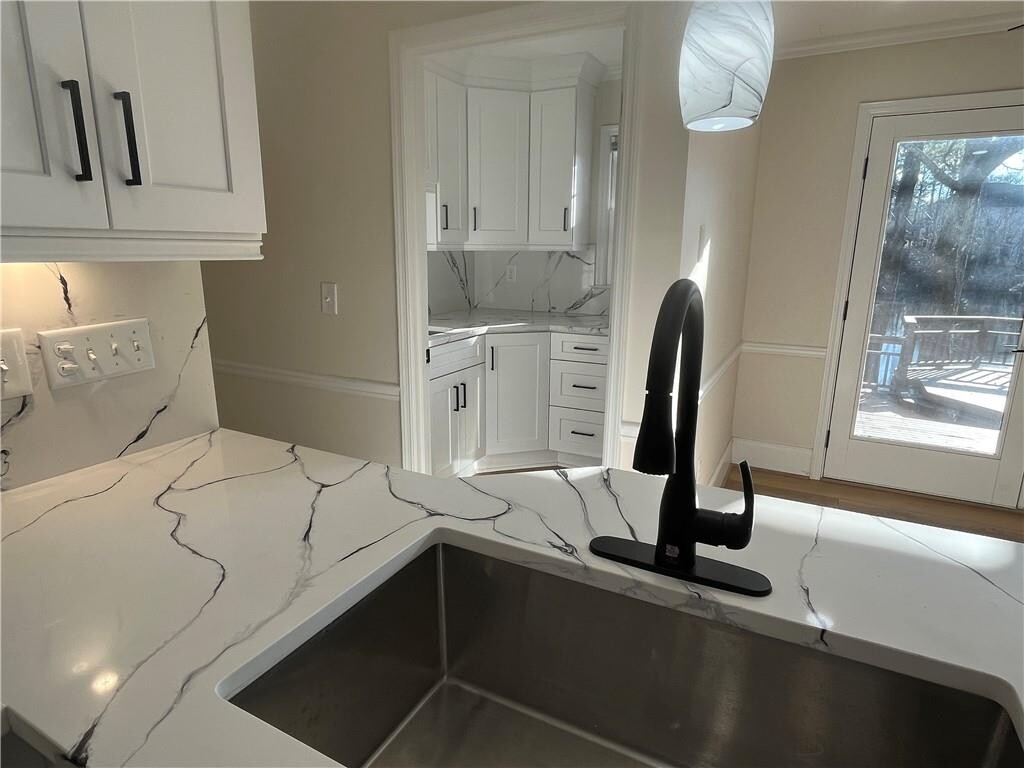 Imagine yourself LAKE living in E Cobb,in a neighborhood that has some of the top ranked schools in the area and with a huge interior renovation. Well here it is. Come out to your screen porch year round or better yet come out from the kitchen to a huge deck on your way to your gazebo while enjoying the peaceful view of the pond. This home also has a brand new kitchen complete with quartz counters,gas range,wine chiller and breakfast bar. There is a walk in pantry complete with a sink,an ice maker and loads of cabinets and counter space. Two (2) stairwells,new low maintenance floors,built-ins around the fireplace are just a few of the upgrades. There is a sep dining room & liv rm,but you can easily change one to an office and the other a large dining rm seating 12++. Full laundry upstairs with w/d included. Bonus room upstairs for whatever you can imagine. All 4 bedrooms are good sized,not tiny. 2 car garage with storage,not to mention storage all over the house. This home is in a neighborhood that is within walking distance of the East Cobb Swim & Tennis. Great schools,great location,cool house!