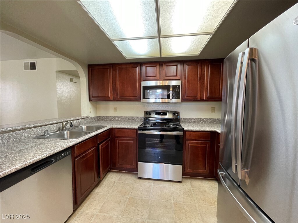 Awesome floor plan, with views of the pool, fully equipped kitchen with brand new stainless steel appliances, 3 balconies, wood-burning fireplace in great room, laundry room with washer and dryer, huge soaking tup in master bath, skylight, located in gated Henderson Community.