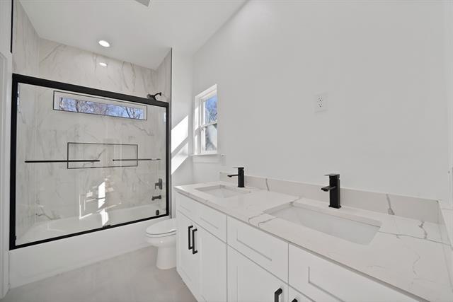 Here is a distinct rewording that maintains the substance while varying structure, phrasing, and tone: Discover contemporary comfort in this newly built Dallas home. Offering three bedrooms and two and a half baths, the thoughtfully designed floor plan blends functionality with modern appeal. The main level features an airy, open living space anchored by a stylish kitchen equipped with stainless steel appliances, modern finishes, and an oversized island ideal for entertaining. The primary bedroom serves as a relaxing retreat, complete with a spa-like ensuite bath and a generous walk-in closet. Two additional bedrooms are well-sized and share a full bathroom, while a powder room on the main floor adds convenience for guests. Outside, enjoy a private backyard and energy-conscious features throughout the home. Located close to shopping, dining, and major highways, this residence offers the advantage of new construction in a prime Dallas location.