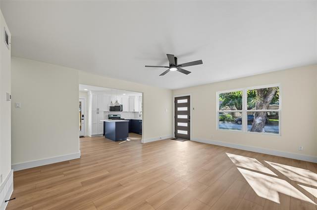 Come and be wowed! This charming, updated, and move-in ready home in the heart of Garland offers the perfect blend of character and comfort - all at a price that’s hard to beat. The location is prime real estate, just minutes from the high school, major highways, shopping, dining, and parks, with easy access to Downtown Dallas and the surrounding metroplex. This home truly checks all the boxes. Experience the perfect combination of modern comfort and timeless charm in this beautifully renovated 3-bedroom, 2-bath home. Step inside to find fresh interior and exterior paint, designer light fixtures, updated hardware, and a warm, welcoming layout that instantly feels like home. The contemporary front door opens to a bright, spacious living room that flows into an open-concept kitchen and dining area featuring elegant quartz countertops, sleek stainless-steel appliances, and new luxury vinyl flooring - creating a stylish setting for both everyday living and entertaining. Additional upgrades include newer energy-efficient windows, new doors and trim, and enhanced finishes that elevate every space. The kitchen flows effortlessly into the inviting dining area and cozy family room, where you can imagine relaxed evenings with loved ones. A flex space adds even more versatility. Retreat to your private master suite with a generous closet, while the spa-inspired bathroom just outside features quartz countertops and a large walk-in shower. The layout provides easy access for children or guests without feeling cramped. Two additional bedrooms and a well-appointed guest bath complete the thoughtful design. A long list of recent upgrades makes this home truly move-in ready - come see for yourself!