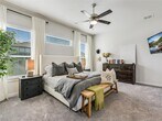 Situated in the highly sought after community of New Braunfels, this home features soaring ceilings and large windows and an open floor plan. With two main-level bedrooms and two upstairs bedrooms, three full baths, a dedicated office and second living room, there is and plenty of space for comfortable living and entertaining. The home features high-end finishes, durable LVP flooring in the main areas and beautiful outdoor living space. The heart of the home is its modern, open-concept kitchen and dining area. The kitchen features quartz counters and stainless appliances including refrigerator, five-burner gas cooktop, built-in oven, microwave and dishwasher. Designer window treatments, refrigerator, washer and dryer are included in the rent. Ideally situated between Austin and San Antonio, the Wasser Ranch community features parks, walking trails, fishing pond, dog park and picnic pavilions. The property's prime location is just minutes away from schools, shopping and entertainment, including Gruene, Texas and New Braunfels’ historic downtown. Up to two dogs or cats allowed with non-refundable pet deposit.