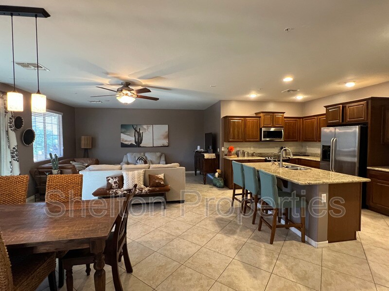Spacious and bright home featuring 3 Bedrooms and 2 Bathrooms—. Spacious primary bedroom features a seating area! Large, open floorplan centered around a truly amazing kitchen. The kitchen is a chef's dream, highlighted by beautiful granite countertops, a huge island, rich wood cabinetry, stainless steel appliances, and a tiled backsplash. Enjoy beautiful tile flooring and ceiling fans throughout the home. Step out onto the inviting, private back balcony to take in picturesque mountain views, the perfect setting for relaxing or entertaining on the weekends. Fireside offers a truly exceptional lifestyle, featuring an amazing community center with multiple sparkling pools and far too many incredible amenities to list here, all available to you, year-round.