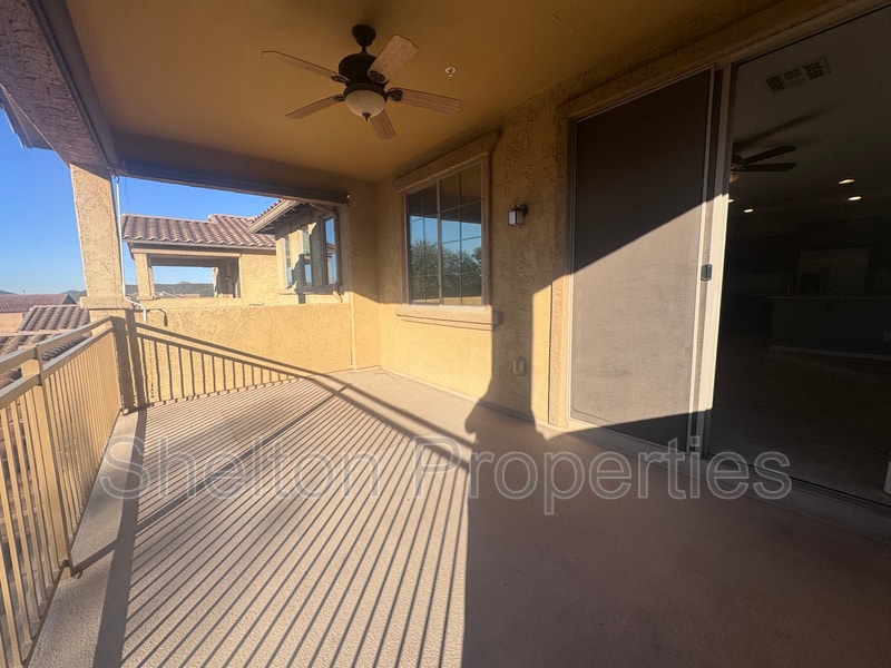 Spacious and bright home featuring 3 Bedrooms and 2 Bathrooms—. Spacious primary bedroom features a seating area! Large, open floorplan centered around a truly amazing kitchen. The kitchen is a chef's dream, highlighted by beautiful granite countertops, a huge island, rich wood cabinetry, stainless steel appliances, and a tiled backsplash. Enjoy beautiful tile flooring and ceiling fans throughout the home. Step out onto the inviting, private back balcony to take in picturesque mountain views, the perfect setting for relaxing or entertaining on the weekends. Living in Fireside at Norterra means having resort-style perks right at your doorstep—pools, a full fitness center, community center with events, tennis courts, parks, playgrounds, and miles of beautiful walking trails.