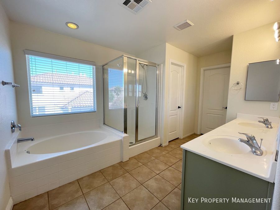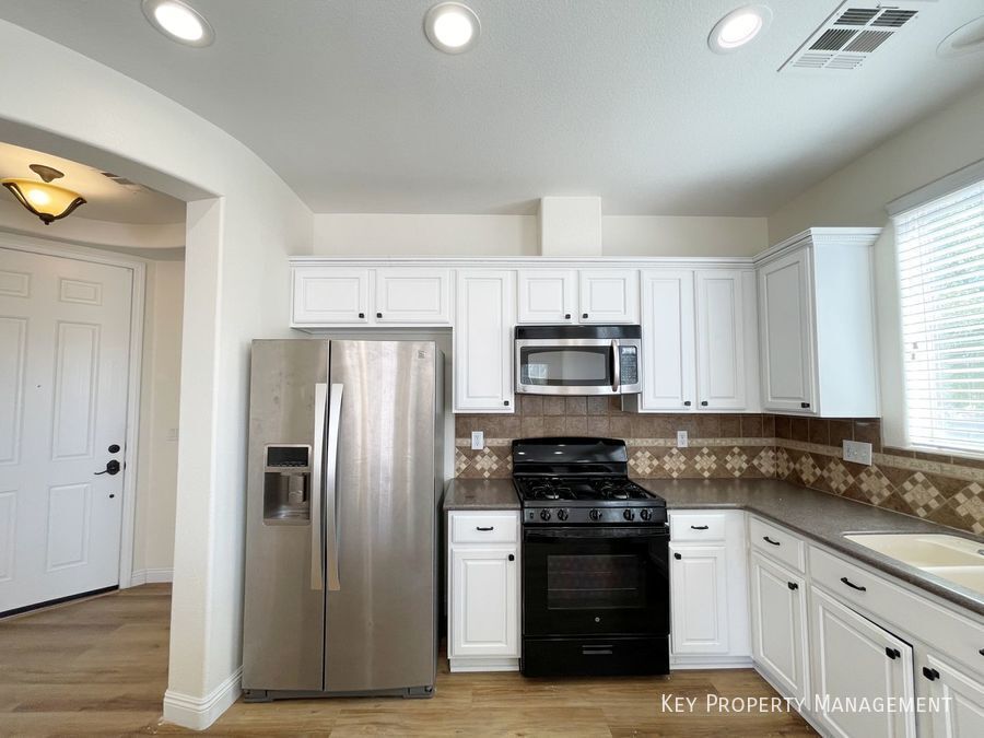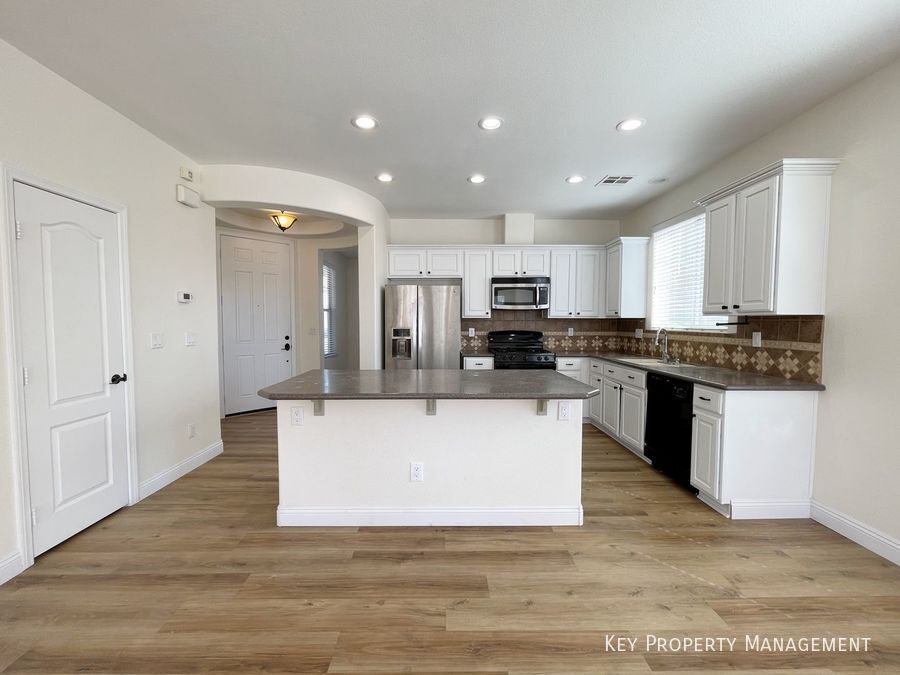 Spacious home with a 2-car garage and private pool. Features include manmade wood flooring throughout, modern finishes, and a bright kitchen with a garden window. The primary suite offers a walk-in closet and a bath with separate tub and shower. All appliances are included, along with pool service for added convenience. Laminate Wood Flooring Pool