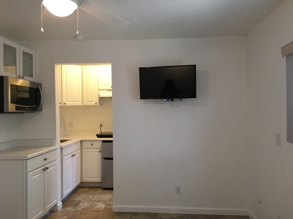Avail now. This large studio apartment is a conversion adjacent to a single family home. It has it's own entrance accessed through your private patio. Features include a separate back yard, planter box, patio furniture, BBQ, Storage Shed and detached den/office area. Amenities include a stove top, oven/microwave combo, frig, wall mounted TV with remote, tile floors and a full bathroom. Easy freeway access. Rent is $1,495 with a $1495 deposit. Pet Friendly!! This is a non-smoking/drug free property. Additional information and applications are on our website at or call our office at .