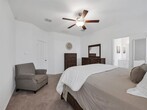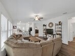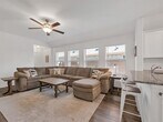 Welcome to this charming one-owner home that's ready for new memories to be made! A beautifully landscaped front yard invites you inside, where you’ll find an open, light-filled layout with a neutral color palette and durable laminate vinyl flooring throughout the main living areas. The spacious family room features a ceiling fan and an abundance of windows, creating a bright and welcoming atmosphere. The kitchen is perfect for everyday living and entertaining, with a breakfast bar, center island with storage, a place for a coffee bar, white cabinetry, black appliances, granite countertops with a built-in cutting board, and a pantry. Enjoy meals in the kitchen nook overlooking the backyard. The split-bedroom floor plan provides privacy, with the main bedroom offering an ensuite retreat that includes double sinks, a garden tub, large separate shower with ceramic tile surround, linen closet, and walk-in closet. Two generously sized guest bedrooms are located near the guest bath, perfect for family or visitors. Additional features include a separate utility room, covered patio ideal for morning coffee, fully fenced backyard, and rear-entry 2-car garage with plenty of parking. Located in a vibrant community, the HOA offers an impressive amenity center with multiple pools, a fitness facility, meeting space, walking trails, a large pond, and more. Don’t miss your chance to call this beautiful home yours—come see it today and start making new memories! You will receive 1% below the market interest rate for the first year if you use my lender. NO BLIND OFFERS AND NO ASSUMABLE OFFERS - NO SUBJECT TO OFFERS