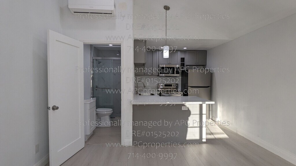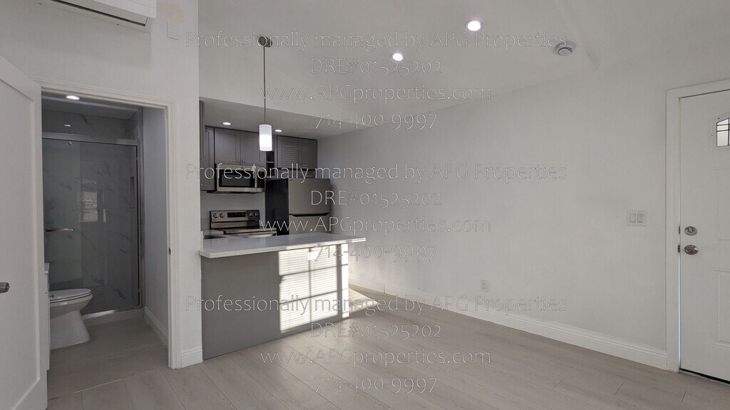 Apply now: Cozy brand new 297 Sqft. studio unit in West Anaheim APG Properties - DRE#01525202 Brand new unit - Never lived in. New Kitchen - Cabinets and Countertops New Flooring New Appliances - Range, Refrigerator New Paint New Bathroom Can lights Heat/AC No Laundry hookups Street Parking only - no parking in the driveway Tenants to pay for all utilities NON SMOKING HOME $2000 Security Deposit can be paid in two installments. This home is generally Pet Restricted, however, there may be exceptions under Federal or State law. AVOID RENTAL SCAMS - APG Properties is the property manager for the owner. This home can be viewed on our website for verification. Listings for this home from any person or entity other than APG Properties may be fraudulent. We do not advertise on Facebook, Craigslist, or any room-for-rent sites. We will not ask for cash, wire transfers, or any payments to view or hold the property. - For your security, Please do not give anyone money or sign a contract with anyone other than APG Properties. - Applications are only accepted through our website. This Property is offered by APG Properties DRE #01525202 Equal Opportunity Housing. We accept all sources of income. Please call or email Check out our website at RENTAL CRITERIA FOR APPLICANTS: Credit Score: Each Applicant must have a credit score of at least 675. No Evictions Rental History: Each Applicant should have no late rent payments in the past 12 months, with verifiable rental history for the last three years, confirmed directly with landlords Income Requirement: NET combined group income must be at least 2.5 times the monthly rent. Applicants utilizing housing vouchers must demonstrate income sufficient to meet their portion of the rent, in line with the voucher program’s guidelines. Income Verification: Income is verified through the most recent 3 months pay stubs and W-2 forms, directly confirmed with the employer. Self-employed applicants must provide At least two years of signed personal and business tax returns for verification and/or any verifiable 1099’s or K-1 forms. Co-signers are not accepted Complete the Pet Screening information, if you have pet(s), no pet(s), or Assistance Animal(s). The Website is Some property application requirements may vary. Please see the property posting on our website for specific information. APG will charge the tenant $10 per month technology fee to allow online transactions which includes payments.