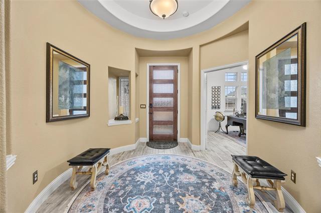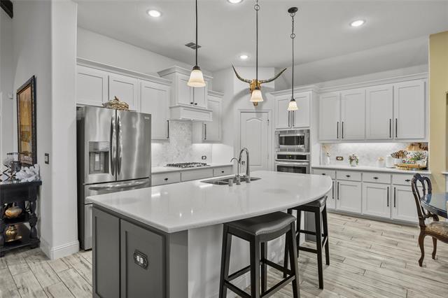 This stunning 4-year-old home in the desirable Stone River golf community offers the perfect blend of modern luxury and serene golf course living. Located directly on the golf course with prime views overlooking hole 4, this like-new residence delivers an exceptional lifestyle just minutes from Rockwall and Royse City amenities. Features include 3+ office bedrooms and 2.5 baths, a spacious 3-car garage, soaring cedar beams in the living room, stone floor-to-ceiling fireplace that serves as a striking focal point for gatherings. The deluxe kitchen is a chef's dream, complete with a large center island, premium quartz countertops, a gas cooktop, high-end stainless steel appliances, upgraded cabinetry, and a charming buffet in the breakfast nook for effortless entertaining. Quartz surfaces extend seamlessly into the bathrooms and laundry room, adding a touch of elegance throughout. Entertain outdoors on the extended covered patio, where you can relax and take in breathtaking views of the fairway, ideal for morning coffee, evening barbecues, or simply enjoying the peaceful golf course scenery. Built just four years ago, this meticulously maintained home combines contemporary upgrades with the tranquility of golf course living in a welcoming community. Don't miss this rare opportunity to live on the course at Stone River!