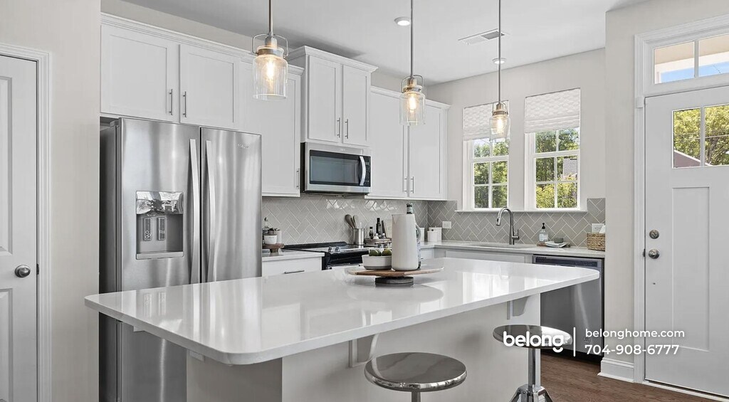 Open sightlines, generous natural light, and a balanced 3-bedroom, 3-bath layout define this bright, well-composed space designed for everyday comfort. The main living area feels open without feeling exposed, with clean finishes and a neutral palette that reflects light throughout the room and supports a variety of furniture arrangements. The living and dining areas connect naturally to the kitchen, creating a cohesive flow that keeps the space feeling light and uncluttered. In the kitchen, streamlined cabinetry, sleek surfaces, and a spacious island provide both visual openness and practical prep space. Windows positioned along the main level help maintain an airy atmosphere from morning through evening. Each bedroom is paired with its own bathroom, offering privacy and flexibility for shared living, guests, or a dedicated home office setup. The consistent layout across levels keeps the space feeling calm and well-organized, while a 1-car garage adds convenient parking and additional storage. Set on Charlotte’s west side, this location keeps daily errands and downtime within easy reach. Nearby grocery options, casual dining spots, and local barbecue favorites are just a short drive away, while neighborhood parks and greenways offer space to get outside and unwind. Major roads nearby make commuting into Uptown and surrounding areas straightforward and convenient. *Our homes come as-is with all essentials in working order. Want upgrades? Request it through the Belong app, and our trusted pros will take care of the rest.