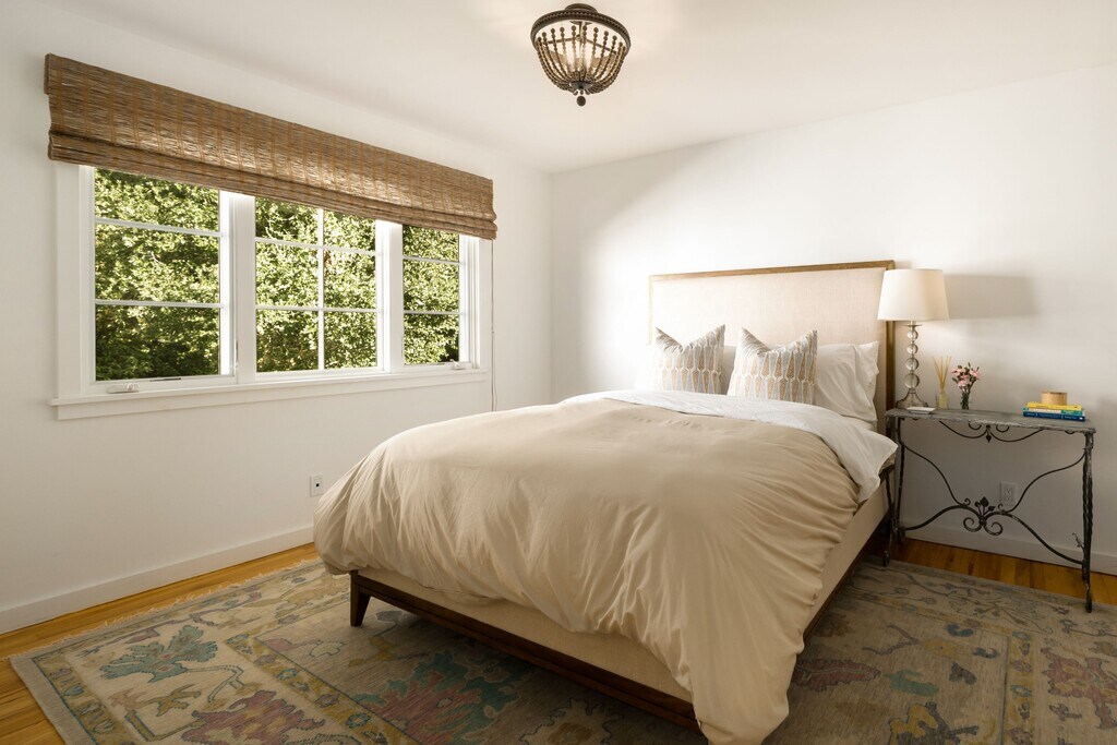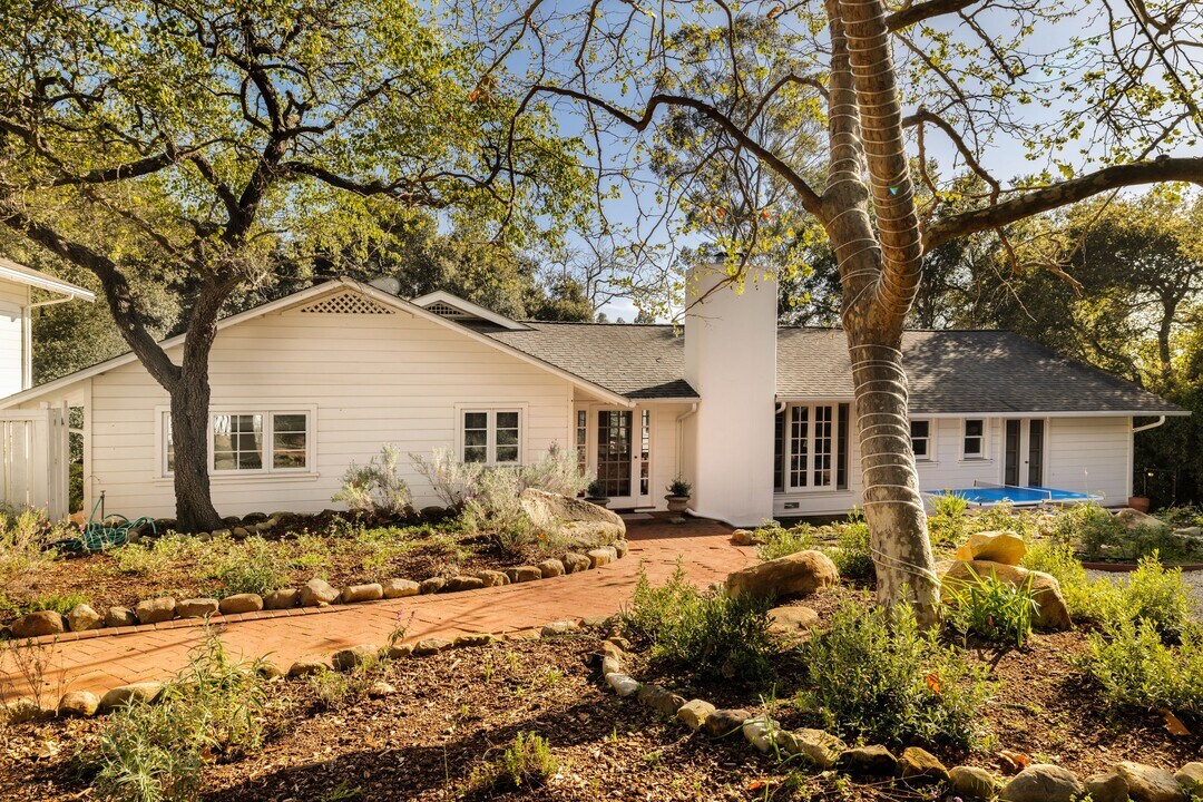 Nestled in a peaceful Montecito setting with beautiful mountain and ocean views, this farmhouse-style home offers privacy and relaxed coastal living on approximately 1.1± acres along a gentle creek. The home features vaulted beamed ceilings, multiple fireplaces, and open living spaces connecting the living, family, dining, and kitchen areas. The kitchen includes quartz countertops, a center island, built-in refrigerator, and pantry. The flexible floor plan offers 3 bedrooms and 4 baths, including a home theater in a walk-out basement with its own separate entry. A detached two-car garage includes a remodeled ~600± sq ft upstairs 1bd apartment with private entry. Brick terraces, lawns, and orchard areas complete this serene Montecito setting. Offered FURNISHED - 6+ months preferred. The primary suite features a walk-in closet and en-suite bathroom, while the additional bedrooms enjoy views of the surrounding natural landscape. Additional features include a screening/theater room, art studio space, wet bar, generous storage, and multiple walk-in closets throughout. The guest house, located above the two-car garage with EV charging, offers a separate entrance and includes a bedroom, bathroom, living area, and kitchenette. The home is offered furnished and reflects a relaxed coastal aesthetic. Conveniently located near Montecito's beaches, hiking trails, and the Upper and Lower Villages, this property offers a unique opportunity to enjoy the best of Montecito living. Rental Terms: Annual: $19,500 Per Month
