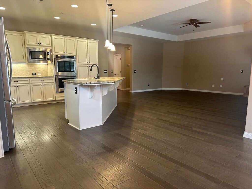 This 3+2 home has wood flooring, custom shutters on windows, and custom paint throughout. Large open floorplan with a spacious kitchen, upgraded custom cabinetry, and many other upgrades. Located in a gated community with a landscaped yard, huge concrete patio and a large outdoor fire pit. Three car garage, three bedrooms, and a master bathroom with a large tub, two vanity sink areas with a large walk in closet. This home is a must see! Rent: $2895.00 Deposit: $2895.00 on approved credit and rental history Pets allowed per owner approval of size and breed with an additional deposit. Tenant responsible for electric, gas, water and renters insurance. APPLICATIONS CAN BE SUBMITTED ONLINE AT Completed applications are processed in the order received. For more information contact: Chrystle Hanson TEXT or call DRE#02031544 Professionally managed by LRS Realty & Management, Inc. We are an Equal Housing Provider and follow all Fair Housing Laws.