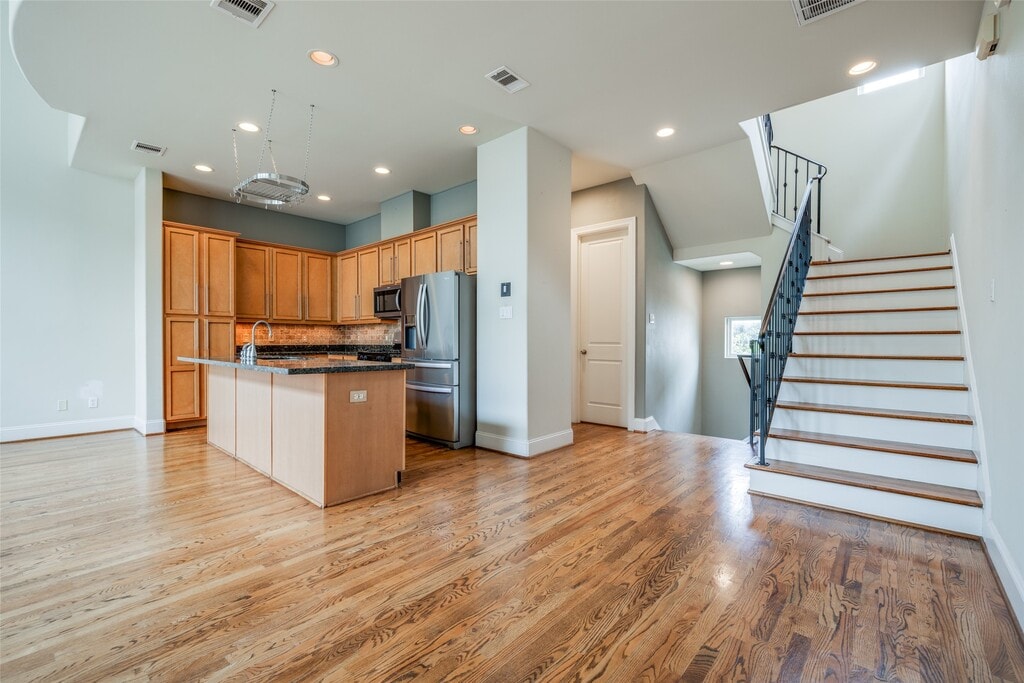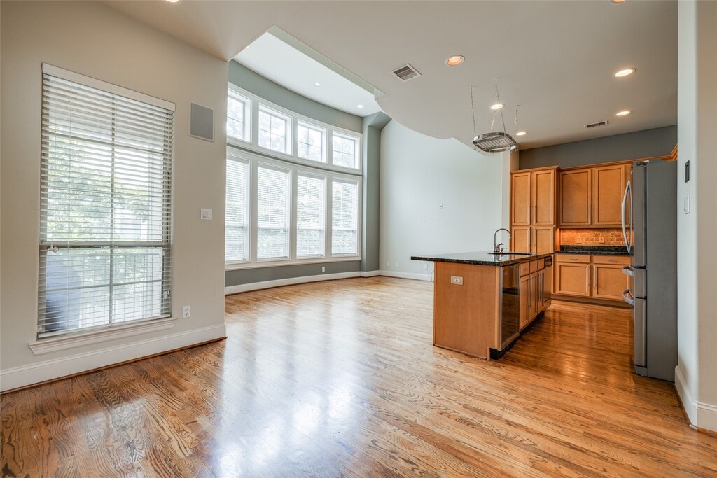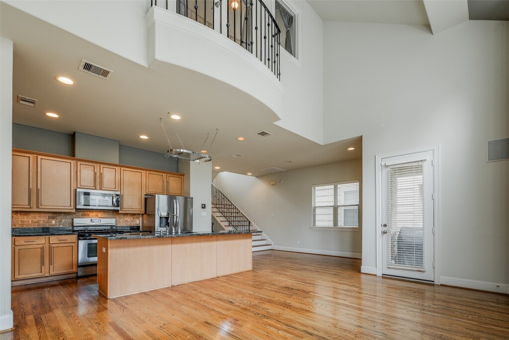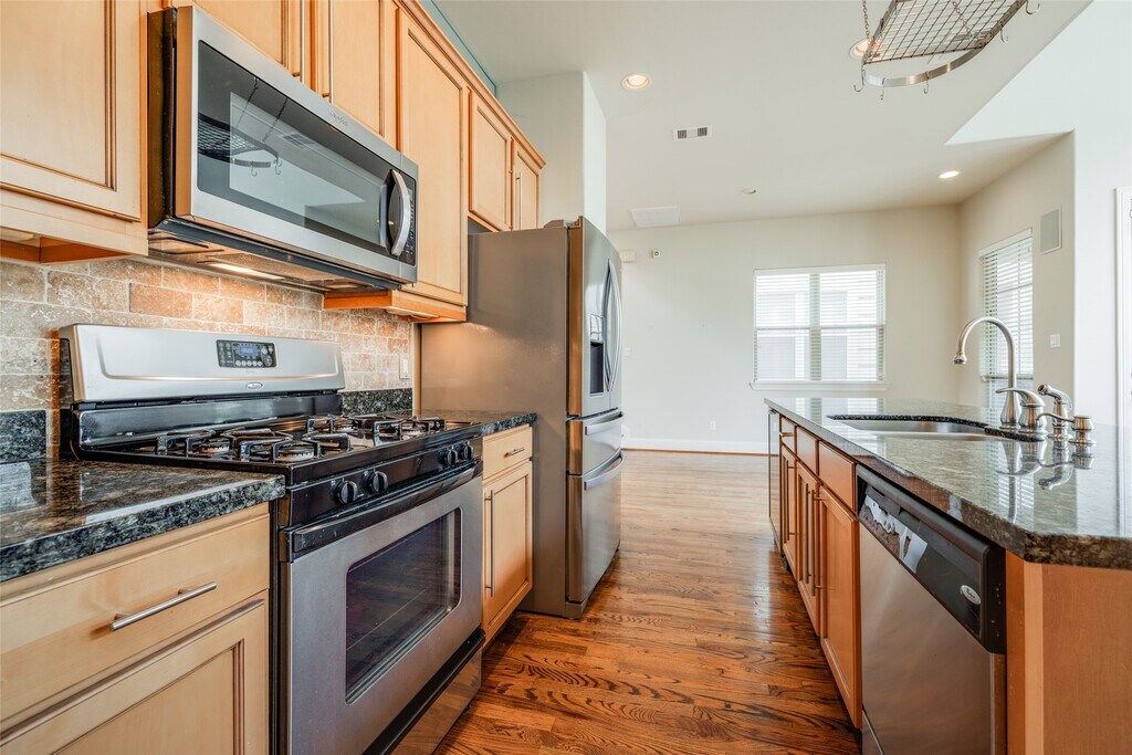 Welcome to 2915 Pease St,a stunning & well maintained property offering luxurious living space. This beautiful 3 story home is in a gated community,w/3-bedrooms,3-baths,2-car garage,& boasts a large living room w/beautiful hardwood floors,high ceilings,& expansive windows that flood the space with natural light. The first floor offers a bedroom & full bathroom. The chef’s kitchen is equipped w/granite countertops,stainless steel appliances,all included! Convenient work area located off the oversized primary bedroom w/tray ceilings & a large walk-in closet,double vanity in master bathroom w/plenty of space for two! Outside is a lovely balcony w/BBQ pit & deck which is perfect for outdoor relaxation. Just minutes away from the Toyota Center,Discovery Green,Convention Center,& easy access to I-10,I-45,I-59,288,shopping,trendy restaurants,& all DT has to offer. Enjoy the convenience of living in an eclectic neighborhood with historic charm and modern revitalization! MLS# 28148724