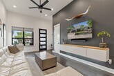 This home was designed with entertaining in mind. A sleek steel fence encloses the front yard, creating a spacious and stylish area perfect for gatherings or play. Step inside to an open-concept floorplan anchored by a generous dining area, complete with a wine cellar and a beautifully appointed wet bar—ideal for hosting in effortless style. The fun continues outside with a stadium-style viewing deck, a putting green, and an expansive backyard that also features a raised garden area—perfect for herbs, veggies, or seasonal blooms. On the main level, the primary suite offers a luxurious retreat with an electric fireplace and a deep walk-in closet. Upstairs, a versatile flex space leads to two additional bedrooms, giving you plenty of room to spread out. Additional perks include a two-car garage and a convenient dog door leading directly to the backyard. A rare lease opportunity that blends comfort, function, and unforgettable spaces—welcome home.- Ready for show Nov 30th - Open to fully furnished leasing for $5300 - Disclaimer: Photos were taken a couple of years ago. There is no active construction of a new home next door.