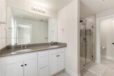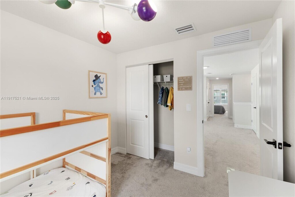 Welcome to this 3-bedroom, 2.5-bath townhome with 1,547 square feet under AC of thoughtfully designed living space. The property is a corner unit offering enhanced privacy and generous natural light. Never rented and meticulously maintained, this residence combines modern elegance with family-friendly functionality. The home is upgraded throughout, featuring stunning grey quartz countertops, crisp white backsplash, and elegant white cabinetry. Luxury vinyl flooring flows through living areas for easy maintenance, while plush carpet in bedrooms ensures quiet comfort. Impact windows for peace of mind and energy efficiency. The open-concept first floor includes a kitchen with stainless steel appliances, and a convenient powder room. The upstairs is a private sanctuary: three spacious bedrooms, two full baths, and an oversized family loft—perfect for play areas or home office. The laundry is conveniently located on the bedroom level. The primary suite features a luxurious bathroom with glass shower and modern tile work. The 2nd and 3rd bedrooms offer serene lake views and the windows flood spaces with natural light. The backyard overlooks tranquil lake vistas—ideal for weekend barbecues and outdoor entertaining. The two-car garage provides ample parking and storage. Ideally located near grocery stores, shops, parks, and schools—everything your family needs within reach. Fully child-proofed with WiFi extenders and safety features already installed. Can be rented furnished.