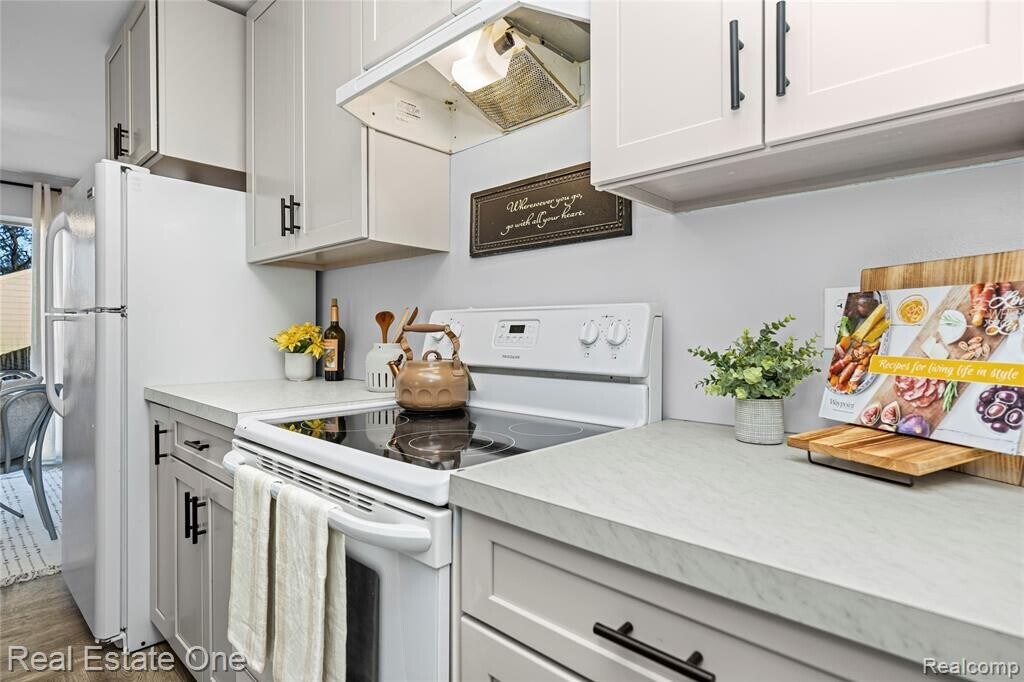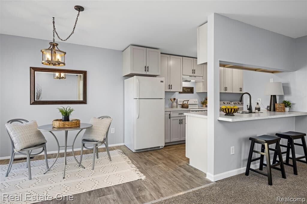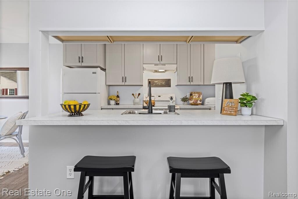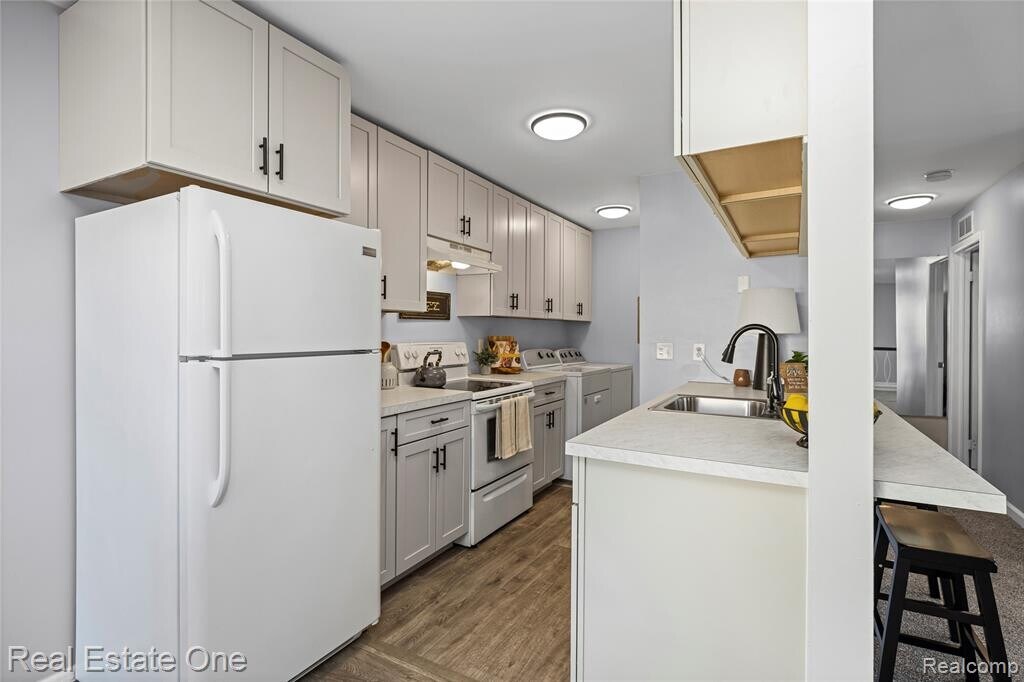2025 REMODELED Upper Ranch (carriage style) Lake Orion CONDO with an Oversized 1-Car GARAGE (over 5 feet of extra storage area in back)--approx $19k just invested into BRAND NEW Renovations to make your new home BEAUTIFUL!! Brand new shaker style kitchen cabinetry with soft close drawers, new counters, new hardware, new fixtures, new sink with kitchen sink wall opened up to the living room, including a spacious, one level new prep and snackbar counter--so nice!! Bathroom showcases a new vanity, flooring, fixtures, newer tub surround, newly glazed tub and fresh paint...the entire home has also been freshly painted, it's welcoming and cozy. New carpet throughout most and newer kitchen vinyl flooring. Balcony/deck, laundry space off kitchen, plenty of closets including a 5x8 primary suite WIC. PRIVATE BEACH & LAKE/DOCK ACCESS to ALL SPORTS Lake Voorheis included in your association fee (in addition to water/sewer/trash/snow removal/lawn care etc). ALL appliances included. 2010-ish vinyl windows, 2022 New water tank, 2024 Washer and Dryer, 2019 stainless dishwasher, 2012 Roof, Furnace 2005 with new motor 2015, Humidifier 2015, Electrical service box 2011. **Seller also providing a fully paid one year Cinch Buyer Plus Plan Home Warranty for peace of mind.** Prime location near grocery, I-75, Great Lakes Mall, restaurants, walking/bike paths, dog park, county parks --Where Living truly IS a Vacation!! Blue Ribbon Lake Orion Schools. LAND CONTRACT AVAILABLE and PREFERRED, SEE SALE MLS LISTING.