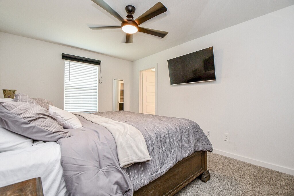 Ready for immediate move in!!! Washer,Dryer & Refrigerator included. Fully upgraded 4-bedroom,2.5-bath D.R. Horton home with a lake view located in the desirable gated City Gate community. This stunning home features smart home automation,42” cabinets,Silestone countertops,stainless steel appliances,oversized primary shower,tankless water heater,16 SEER HVAC,covered patio,fenced yard & HOA-maintained front lawn. Home is generator ready for added peace of mind! Enjoy the outdoor living space with automatic electric shades on the patio for comfort and privacy year-round. Energy-efficient & move-in ready! MLS# 9914644