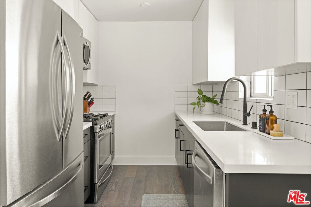 2 bed, 2 bath unit with sleek finishes in prime Ocean Park! A sun-drenched living room greets you upon entering, with a sliding glass door leading out to your large front patio. The living and dining areas lead into the kitchen, equipped with stainless steel appliances and quartz counters. Both bedrooms are generous in size, including the primary bedroom with en-suite bathroom & walk-in closet. The unit boasts abundant storage space, with a built-out pantry, large walk-in storage closet off the living area, and built-in hallway linen storage. Additional amenities include: Samsung mini-split system A/C unit, customizable Elfa closet systems, full-size washer & dryer, and one assigned parking space. Ideally located just minutes to the beach, the shops & restaurants of Main St, Rose Ave, & Abbot Kinney, and the 10 freeway. MLS# 25617597