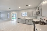 Welcome to this beautifully remodeled 4-bedroom, 2.5-bath corner-lot residence offering exceptional comfort and style. Featuring a contemporary kitchen complete with stainless-steel appliances, this home showcases updated porcelain and laminate flooring, fresh interior paint, and thoughtful modern finishes throughout. Just off the kitchen, you’ll find two versatile computer/work stations, with an additional workspace located upstairs—ideal for remote work, study, or organization. The spacious, low-maintenance backyard is perfect for outdoor living, highlighted by a covered patio and designated barbecue area. A dramatic, dual-entry staircase serves as a stunning architectural focal point, providing access from both the living room and kitchen areas. This home truly blends functionality with modern elegance—your next chapter starts here.