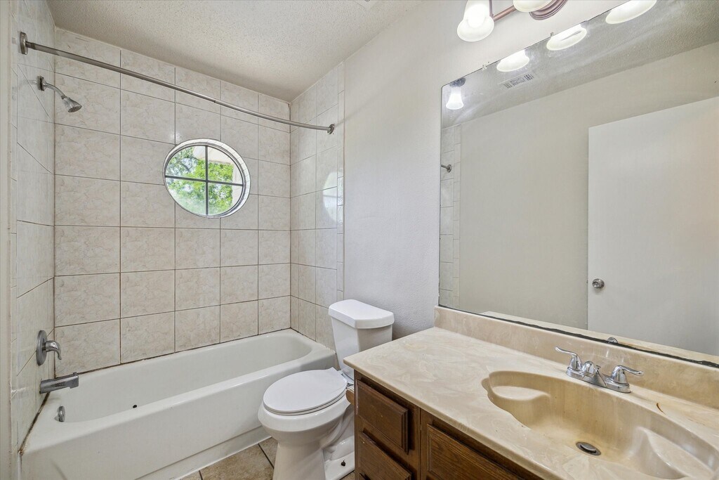 Come see this beautiful two-story home located in the Lakefield subdivisions,in the First Colony neighborhood. It has three spacious bedrooms and a two-bathroom layout. The spacious kitchen offers a lovely view of the Greenbelt. The entire first floor is tiled. The backyard is huge,and the storage shed stays with the property. MOVE-IN READY!!!! MLS# 5661082