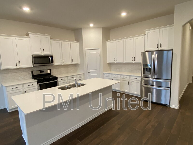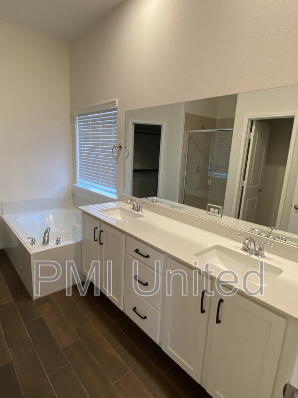 Efficiently designed and built 4 bedroom home with modern kitchen opening up in both the dining and living room. Besides the bedrooms, the entire floor is a dark plank tile. Large primary bedroom with dual sink vanity and a walk in closet. Small mud room connected near the garage door. Secondary bedrooms are nice size. Backyard faces East which will provide shade in the early afternoons. This home does come with a smart panel.