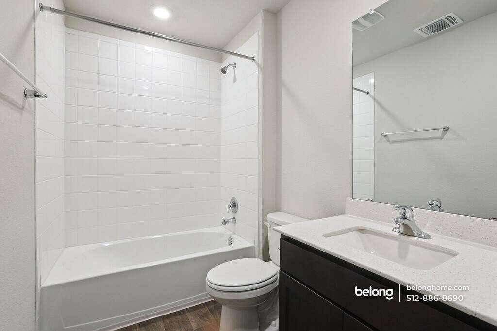 Four bedrooms and three full baths are laid out with intention in this Pflugerville home, where open living space and natural light take center stage. A broad main area connects living, dining, and kitchen zones, allowing each to function clearly while remaining visually linked. Windows draw in steady daylight, giving the space a calm, grounded feel. There’s room to arrange seating for everyday use or to create a more defined setup for gatherings. A large island anchors the kitchen with added prep space and seating potential. Surrounding cabinetry offers practical storage, while stainless steel appliances are positioned for easy access. Recessed lighting keeps the entire area evenly lit, and the open layout allows the kitchen to stay connected to everything around it. All four bedrooms and three baths are distributed to support privacy and flexibility, whether for shared living, guest use, or a dedicated workspace. Each room maintains a straightforward layout that’s easy to furnish and adapt over time. Pflugerville places you within the Austin metro area, with everyday essentials nearby. H-E-B and Walmart Supercenter serve grocery needs, while Stone Hill Town Center offers shopping, dining, and entertainment. Local spots like True Texas BBQ add to nearby options, and outdoor time is easy with Lake Pflugerville and its walking trails close by. *Our homes come as-is with all essentials in working order. Want upgrades? Request it through the Belong app, and our trusted pros will take care of the rest!