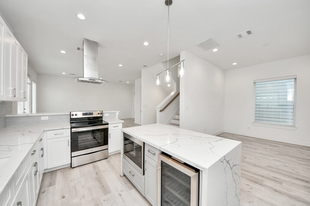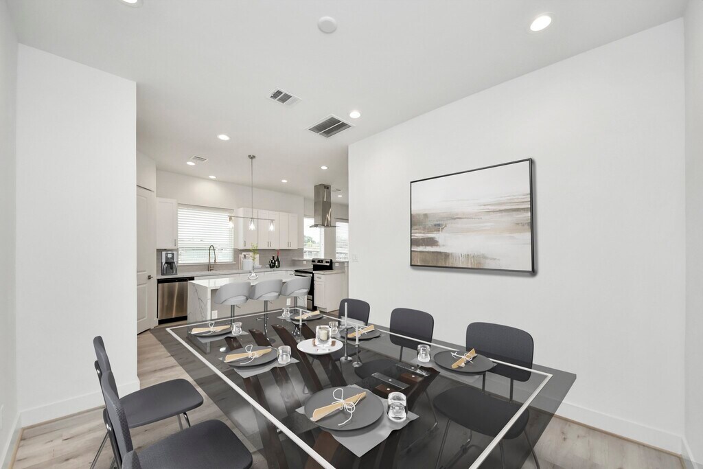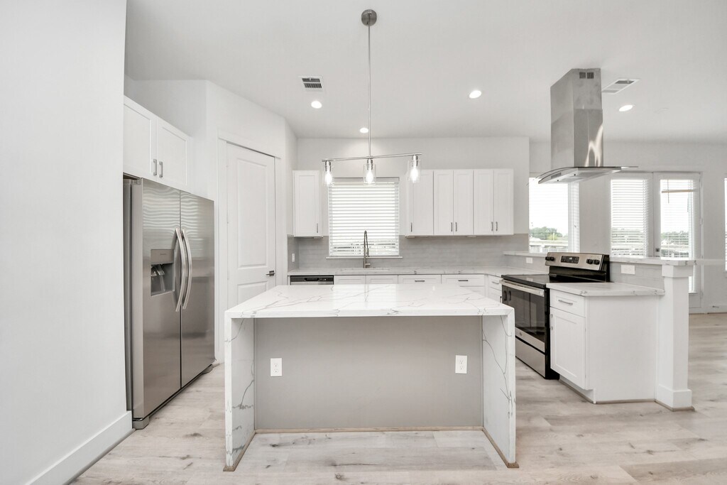 A modern and spacious 3-story home located in one of Houston’s most convenient and rapidly growing areas. The first floor features a large private bedroom with its own full bathroom,along with a two-car garage and private driveway. The second floor hosts the main living area with an open-concept layout that includes the living room,dining area,and upgraded kitchen with modern finishes and enhanced flooring. A private balcony extends from the main living level,providing the perfect spot to relax and enjoy fresh air or city views. The third floor includes a luxurious primary suite with a private bath and ample closet space,along with a third bedroom that also has its own private bathroom. ALL appliances included! Refrigerator,washer & dryer! Situated near Downtown,EaDo,the East River development,Minute Maid Park,and Buffalo Bayou trails,this home places dining,entertainment,and outdoor recreation all within minutes. MLS# 84247257