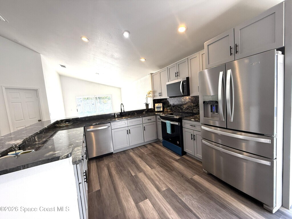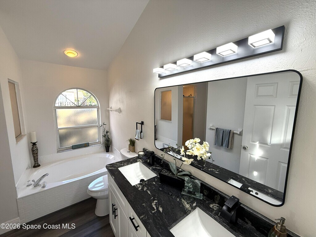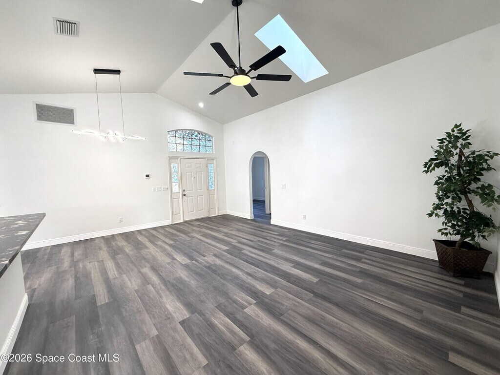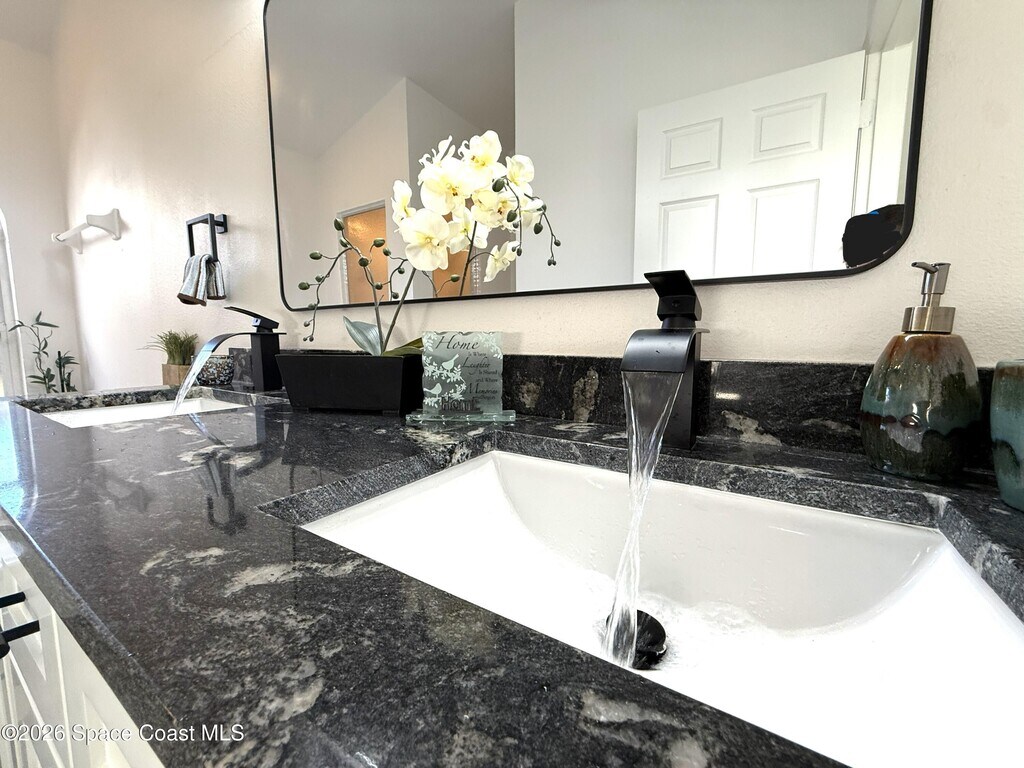 Stunning 3BR/2BA/2 Car garage in a serene location at Pebble creek. This home is updated throughout w/luxurious updates that you will love. Open floor plan w/high ceilings & large living areas boast a comfortable & inviting atmosphere. New vinyl plank flooring throughout.. All New fully equipped kitchen w/sleek soft-close cabinetry,elegant,high grade granite tops,& S.S. appliances create an impressive & functional cooking space. Two breakfast bars. Primary bedroom & bath offer a spacious layout w/soaking tub,enclosed walk-in shower,new double vanity w/granite tops,new faucets,mirror & lighting. Two guest bedrooms & Updated guest bath w/new vanity. Family room slider leads to a screened-in enclosure,perfect for fun gatherings or unwind overlooking the canal. Two car Garage .Freshly painted interior & exterior.Excellent location,just mins to Patrick Space Force,great shopping,schools,parks,fine restaurants & the beach. Easy access to major roadways & airports. Available now. MLS # 1071345