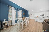 ***2 WEEKS FREE RENT (Applied to 3rd Month!)**** Welcome to this beautifully maintained 3-bedroom,2-bathroom home located in the highly desirable Voss Farms/Laubach 5-community! Step inside to find laminate flooring throughout and a thoughtfully designed open floor plan—perfect for both everyday living and entertaining. The spacious living and dining areas flow seamlessly into a stunning island kitchen featuring ample cabinetry,solid surface countertops,gas cooking,and a convenient breakfast bar. The private primary suite offers a relaxing retreat with a generous walk-in closet and a spa-like ensuite bath complete with dual vanities and a walk-in tiled shower. Secondary bedrooms are well-sized and share a full hall bath with a tub/shower combination. Enjoy exceptional energy efficiency with solar panels,natural gas heating,and a tankless water heater—helping keep utility costs low year-round. Step outside to a covered patio and a privacy-fenced backyard,ideal for relaxing or entertaining guests. Residents of Voss Farms enjoy great neighborhood amenities,including a community pool,and the home is within walking distance to the new Zipp Family Sports Park. Conveniently located near IH-35,this home offers easy access to all that New Braunfels has to offer—from its charming downtown and local dining to the scenic Guadalupe River and vibrant Hill Country lifestyle.