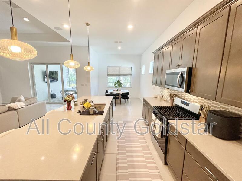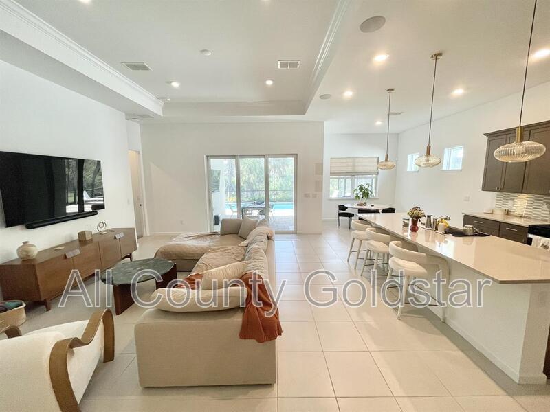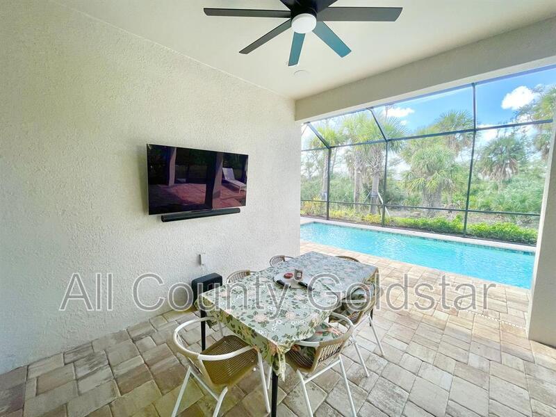 Experience elevated coastal living in this exceptional three-bedroom, 2.5-bath residence located within the prestigious, gated Beachwalk by Manasota Key community with 24-hour security. This high-luxury home features soaring ceilings throughout, an elegant open layout, and is fully furnished, with select items removable upon request. The chef-inspired kitchen is equipped with a natural gas range, while a full-size laundry room includes washer, dryer, and extra storage. One of the few homes in the community offering a private pool, the expansive lanai is surrounded by mature tropical landscaping for exceptional privacy. Residents enjoy world-class amenities including a tropical saltwater resort pool with lap lanes and heated spa, restaurant and bar with indoor and outdoor seating, a grand clubhouse with state-of-the-art fitness center and movement studios, fire pits, tennis, pickleball, and bocce courts, lakeside boardwalk with pier and gazebo, dog park, and community garden.