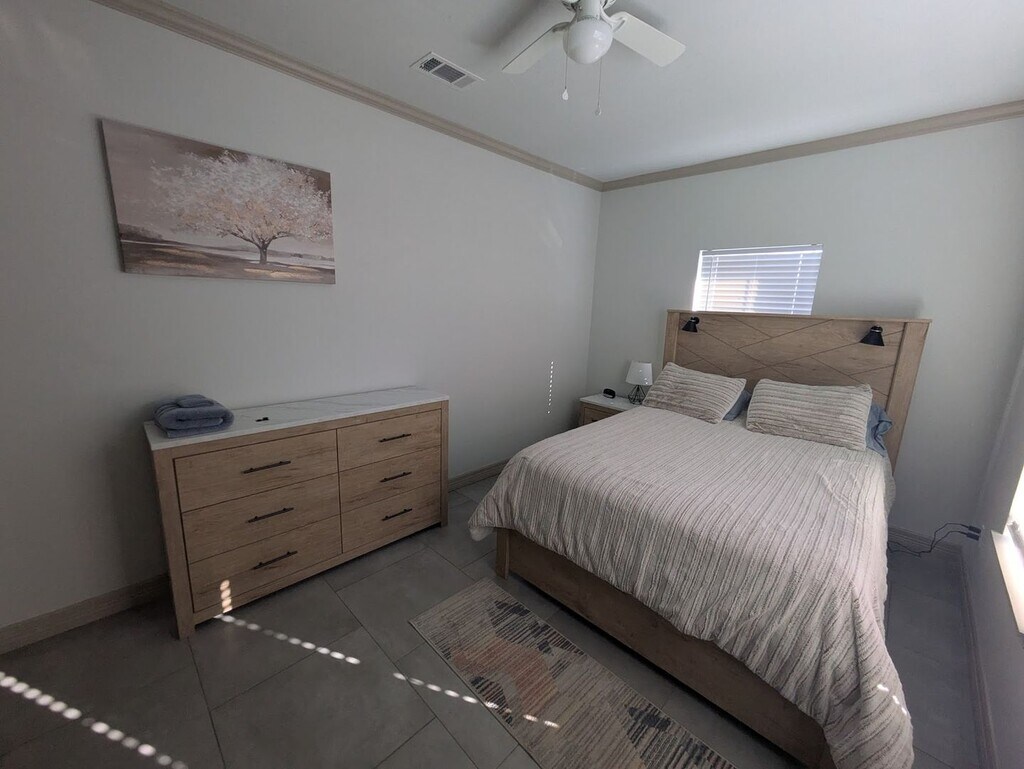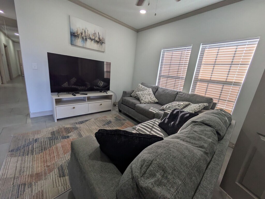 New house $180 per night. 1st. night only FREE dinner delivered from Luby's by our delivery service free. Peaceful and centrally located place. The duplex was just completed in late November 2023 & will transform you from city to sanctuary with its comfy living area & quiet location. Easy access to I10 only 2 min. It's 1350 sq ft w/ 3 BR & each has 1 queen bed, 2 full baths. Fully stocked kitchen, washer, dryer in home. Privacy fence & security cameras in the front & back of the duplex.