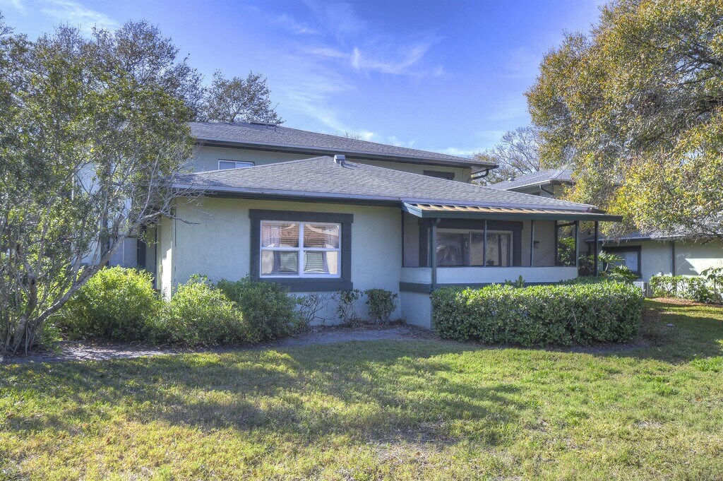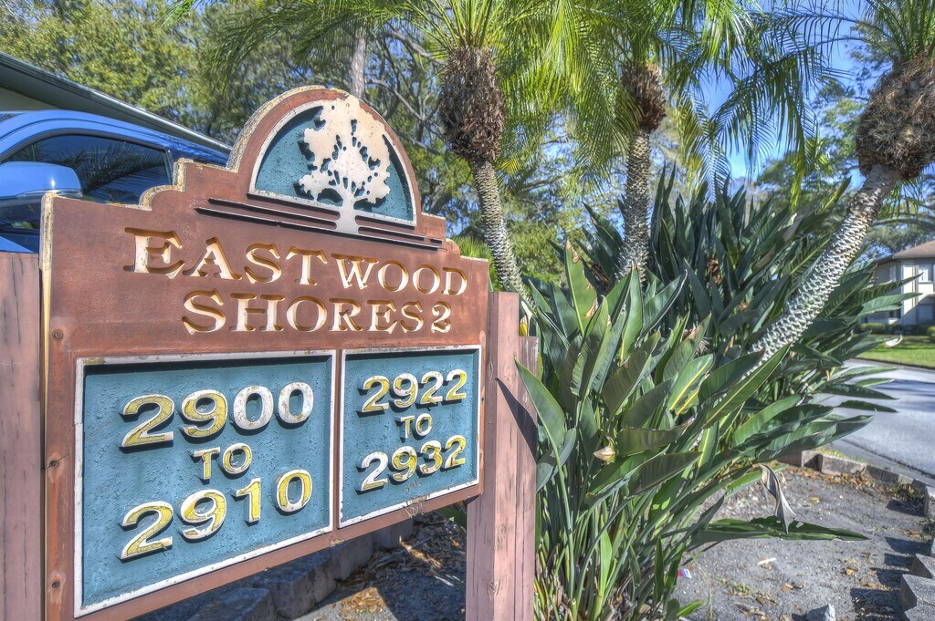 This inviting 2-bedroom, 1-bath Villa on the ground floor in Eastwood Shores is available for an annual lease starting 01/01/2026, complete with a one-car garage space. Positioned as an end unit amidst a picturesque garden, this charming villa offers a great room with a vaulted ceiling that seamlessly connects to the updated kitchen. Enjoy granite countertops, stainless appliances, and a breakfast bar in the kitchen, along with a convenient laundry area equipped with a full-size washer and dryer. Step onto the screened lanai with ceramic tile for a cozy outdoor space. The property comes with the added bonus of a nearby pool, enhancing convenience and leisure. Situated within the Eastwood Shores community, revel in the tranquility of a park-like environment featuring multiple swimming pools, tennis courts, a scenic walking path along the bay, and a delightful fishing dock on Tampa Bay. Benefit from the highly desirable location, with just a 20-minute drive to the renowned Clearwater Beach and Downtown Clearwater, 25 minutes to Tampa International Airport, and a mere 10 minutes to St. Pete-Clearwater International Airport. Don't let this fantastic opportunity pass you by—schedule a viewing today! Water, Sewer and Trash included in Rent. Tenant pays own Electric, and Cable/Internet.