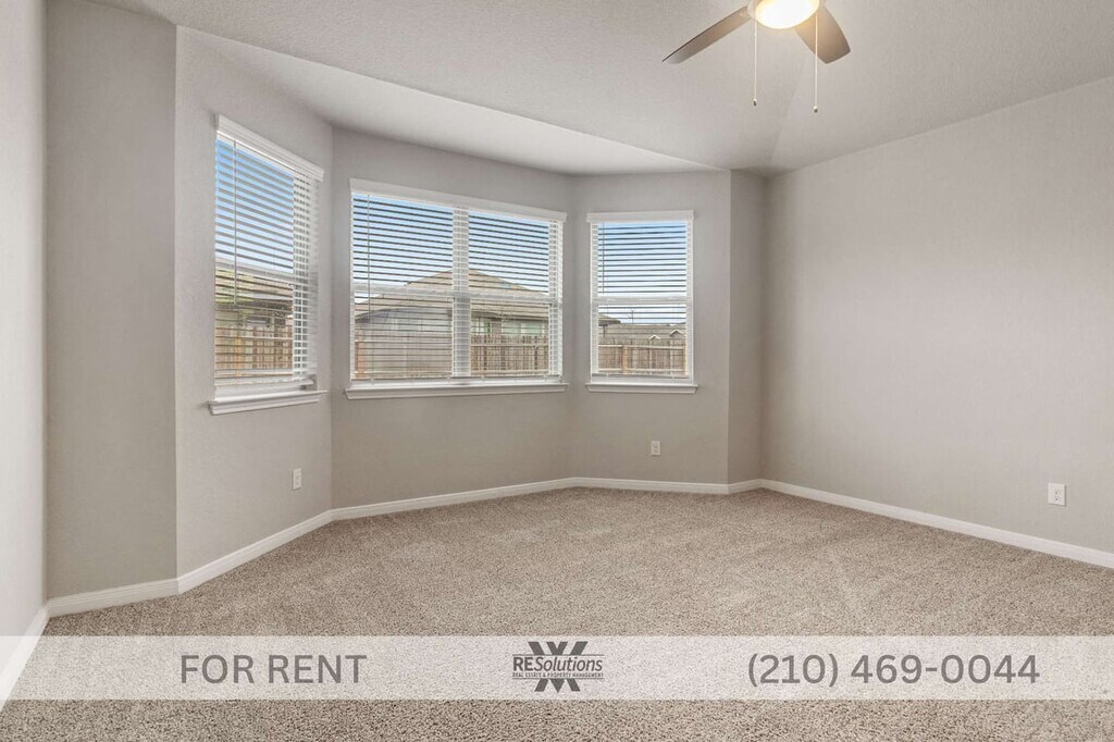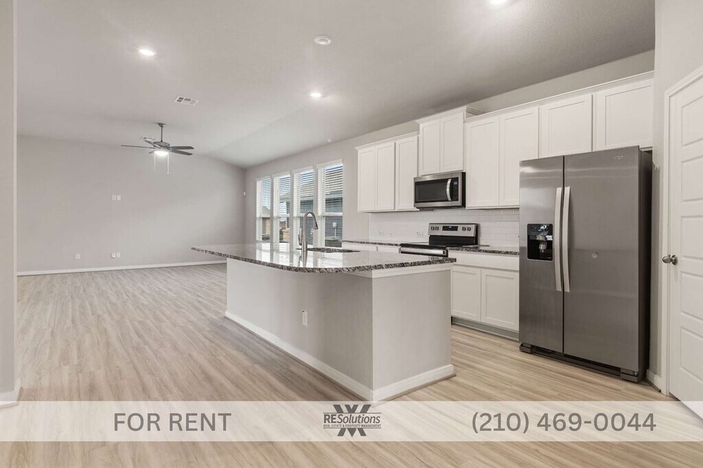 This newer one-story residence offers a functional and open layout with high ceilings, a dedicated dining area, and a centrally located island kitchen. The kitchen includes solid countertops, smooth cooktop, dishwasher, microwave, refrigerator, and a walk-in pantry. The primary suite is positioned separately from the secondary bedrooms and includes a walk-in closet and a full bathroom with double vanity and walk-in shower. Additional features include vinyl and carpet flooring, central air and electric heating, ceiling fans, laundry room with washer and dryer connections, water softener, in-wall pest control system, and an attached two-car garage with opener. The exterior provides a covered patio, fenced backyard, and sprinkler system. Located in the Catalina subdivision in Converse with access to I-10 and Loop 1604. Application Information: Offered by RE Solutions XV For an online application and to view complete listing details, please visit our website at For any questions, feel free to call us at , ext.2. We conduct thorough background checks and are seeking qualified, long-term residents. To review our screening criteria and access all required documents, please visit: . - All showings need to be approved by our Director of Leasing through an initial phone conversation. These calls are done during normal business hours, Monday through Friday, from 10 AM to 5:30 PM. Showings can be scheduled at any time after the Director of Leasing has approved the showing. If you have a real estate agent, they can schedule a showing without the Director of Leasing's approval. - Application fee $75/adult; approval requires security deposit (varies) + $175 lease admin fee within 24 hrs; $10/mo admin fee; renters insurance required.