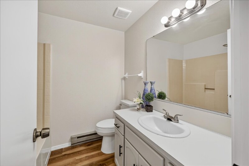Property Id: 2001623 Two bedroom 1 1/2 baths, two levels available September 10th., freshly painted, new wood laminate flooring. Other upgrades include new toilets, cabinet hardware, lighting. Washer & dryer hookups, electric heat, wall a/c upstairs. Tenant responsible for electricity, water and sewer. Owner pays for trash and HOA dues. Small dog possible with deposit and references, no smoking. One assigned covered carport space, second assigned space available every other month.