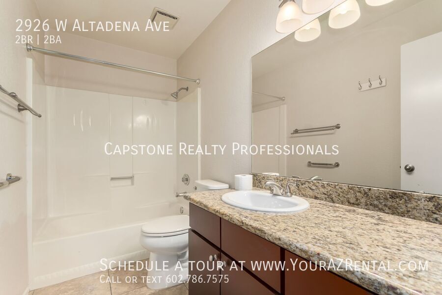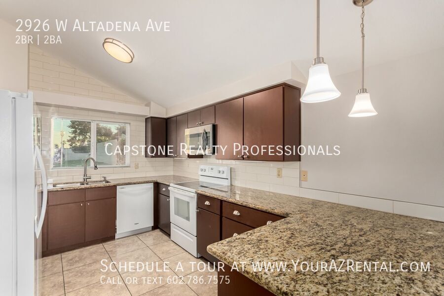 Welcome to this spacious 2-bed, 2-bath single-story home in the desirable Lake Biltmore Estates! With 1,571 sq ft of bright, open living space, this residence features soaring vaulted ceilings, tile flooring throughout, and abundant natural light. The upgraded kitchen includes granite countertops, sleek cabinetry, and modern appliances. Enjoy a private backyard retreat with a covered patio, plus a 2-car garage and inside laundry. Community amenities include a sparkling pool and scenic paths. Conveniently located near I-17, shopping, dining, and more. Washer & dryer available on request Key Features: Open, Airy Interior: High ceilings and natural light create a spacious and inviting atmosphere. Eat-In Kitchen: Features modern appliances, granite countertops, and ample cabinetry. Comfortable Bedrooms: Two well-sized bedrooms designed for everyday comfort. Primary Suite: Includes a walk-in closet and a master bath with dual vanities. Outdoor Space: Private patio and fenced yard, great for relaxing or casual gatherings. Garage: 2 Car Garage Low-Maintenance Living: Tile flooring throughout for easy care. Community Amenities: Community Pool, Walking Paths and more! Convenient Phoenix Location: Situated near shopping, restaurants, the bus line, and I-17, with quick access to Downtown Phoenix. Enjoy nearby conveniences, dining options, and an easy commute. Don’t miss out on this wonderful rental opportunity! Schedule a tour today and make this charming home yours. -- Monthly Fee: Resident Benefit Package $49.99 Security Deposit: Equal to one months rent Cleaning Deposit: $275.00 Pet Deposit: $200.00 per pet One Time Lease Administrative Fee: $150.00 Smoke Detectors