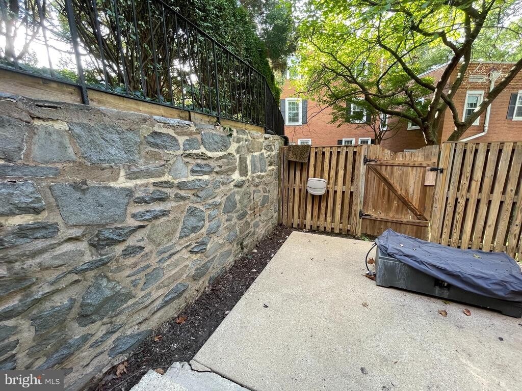Rarely available Fairfax model -one level living PRIVATE ENTRANCE and awesome charming Georgetown style FENCED PATIO Ideal for entertaining. Only 14 of this model exist in all of Fairlington. Freshly painted, hardwood floors, white moldings, updated kitchen and baths. Charming, tucked away at the end of a cul de sac in perfect private location with no through traffic. Highly desirable neighborhood with easy access to Shirlington, Crystal City, shopping, restaurants and all Fairlington amenities ... pool ... tennis, etc. Energy-efficient Windows on two sides and renovated kitchen including granite counters and reclaimed brick floor. Apartment style but lives like a townhouse with your own front and back door. Bath also remodeled with granite counters. Neutral paint and hardwood floors, WASHER AND DRYER IN YOUR APARTMENT. Pets case- by - case - Small dog ok with pet rent $75/mo and pet deposit.