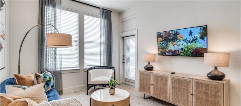 Experience modern luxury living in these beautifully designed apartments, where style and comfort meet convenience. Spacious, open-concept layouts feature expansive windows that allow natural light to fill each room, creating a warm and inviting atmosphere. The gourmet kitchens are equipped with high-end stainless steel appliances, sleek countertops, and ample storage, making them ideal for cooking and entertaining. Luxurious bathrooms provide a serene escape with elegant fixtures and modern finishes. Residents can enjoy a variety of premium amenities, including a state-of-the-art fitness center, a resort-style pool, and lush outdoor spaces perfect for relaxation or social gatherings. With a prime location near dining, shopping, and entertainment, this community offers both tranquility and access to vibrant city life. Whether you're enjoying quiet moments at home or exploring the dynamic neighborhood around you, this residence offers the perfect balance of modern living, comfort, and convenience. Your new home awaits!