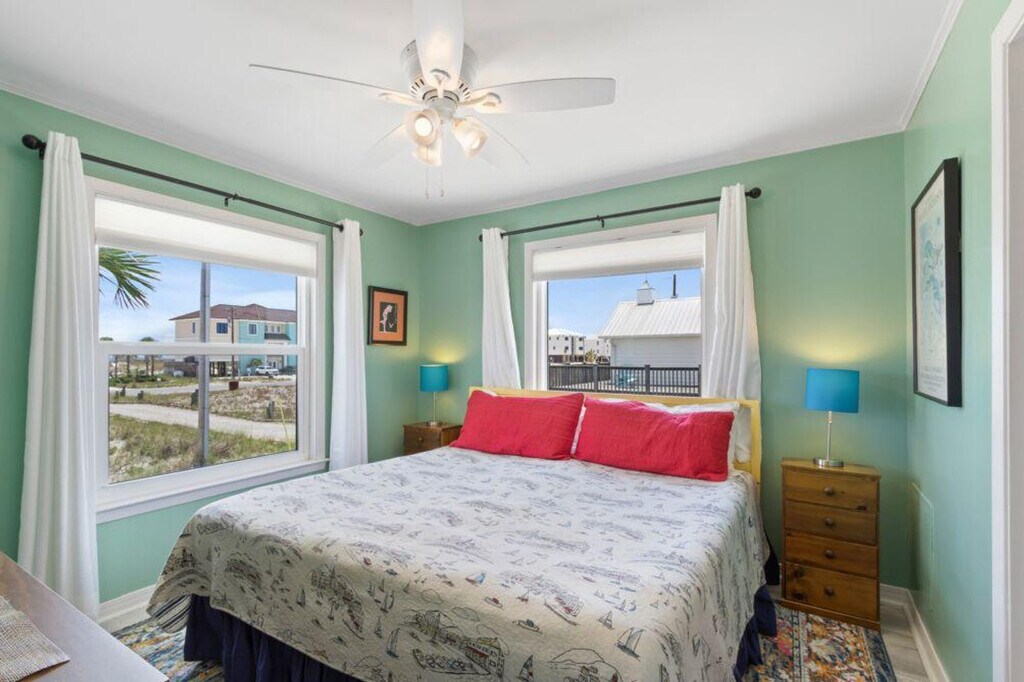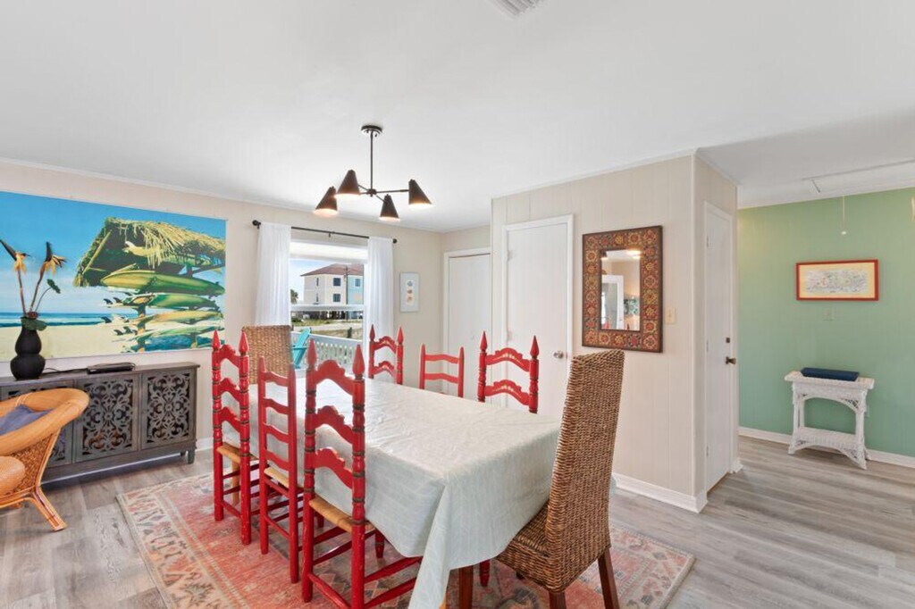 Relax and unwind in this spacious beach house offering comfort, convenience, and stunning views. The home features open-concept living areas with Smart TVs, perfect for movie nights or catching up on your favorite shows. The fully equipped kitchen and adjacent dining area make meal preparation and gatherings a breeze. Step outside to enjoy the beach view from the deck patio, complete with a BBQ area, ideal for outdoor dining and entertaining. With plenty of sleeping areas, the house comfortably accommodates families or groups, ensuring everyone has their own space to relax. Designed with you in mind, this home features air conditioning, a Smart TV, and a deck patio with a BBQ area. The fully equipped kitchen is perfect for preparing meals and enjoying family gatherings. The family-friendly atmosphere and beach access make it an ideal choice for a memorable stay. Parking is available for up to 6 vehicles. Please only park in the gravel driveway as parking in the sand can lead to your vehicle becoming stuck, damage to utility lines, and damage to protected vegetation. Dogs are allowed with a maximum of 2 dogs, each weighing up to 50 lbs, with a fee of $175 per dog plus taxes. Located near popular attractions such as Gulf State Park, Gulf State Park Pier, Alabama Gulf Coast Zoo, Gulf Shores Museum, Bamahenge, Gulf State Park Nature Center, Waterville USA/Escape House, and Dinosaurs In The Woods -- Brontosaurus, this home offers easy access to a variety of activities and sights. The minimum age requirement for check-in is 25 years old from March 1st to May 1st. For same-day late check-ins, approval from the host is required before booking. The home has a maximum occupancy limit, and renters who exceed this limit are subject to eviction. No smoking is allowed in the unit or on the balcony, with a $250 fine plus cleaning costs for violations. No parties or events are permitted, with violators charged a $500 fine. A State Identification Card or Driver's License copy will be requested upon booking. Travelers must be at least 22 years of age to make a reservation. [SI]