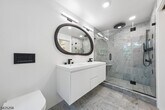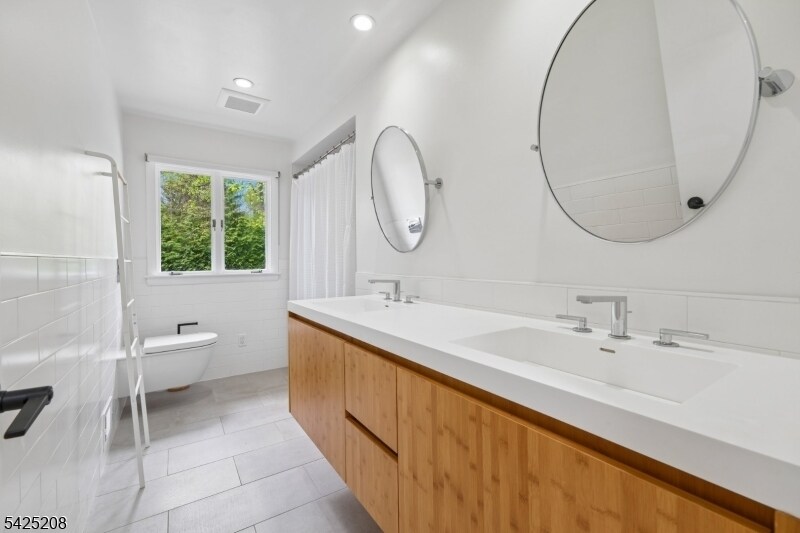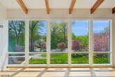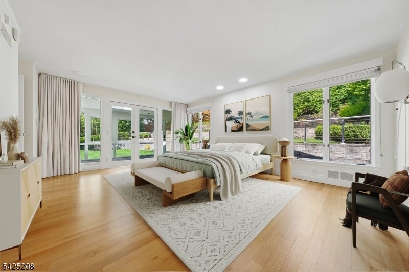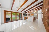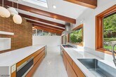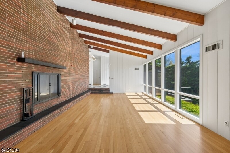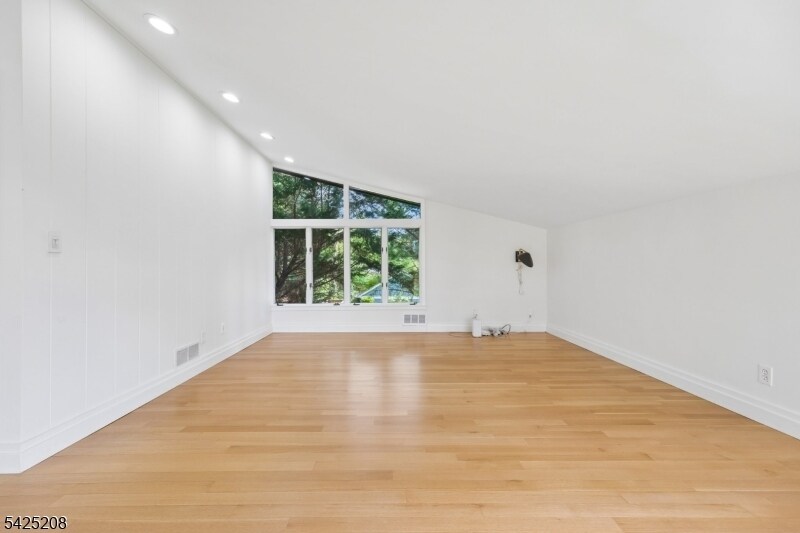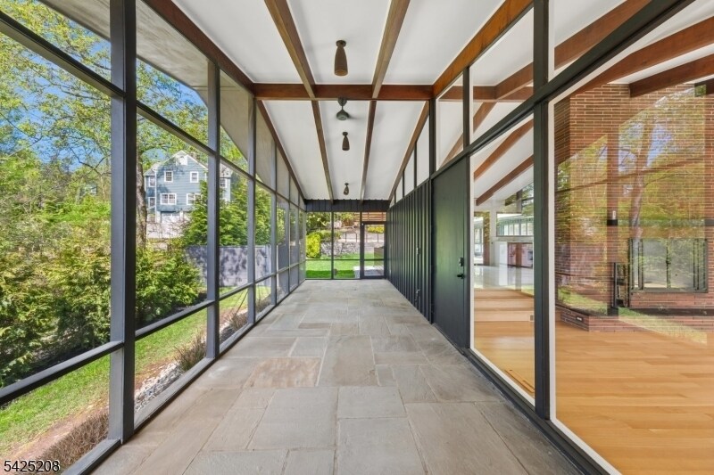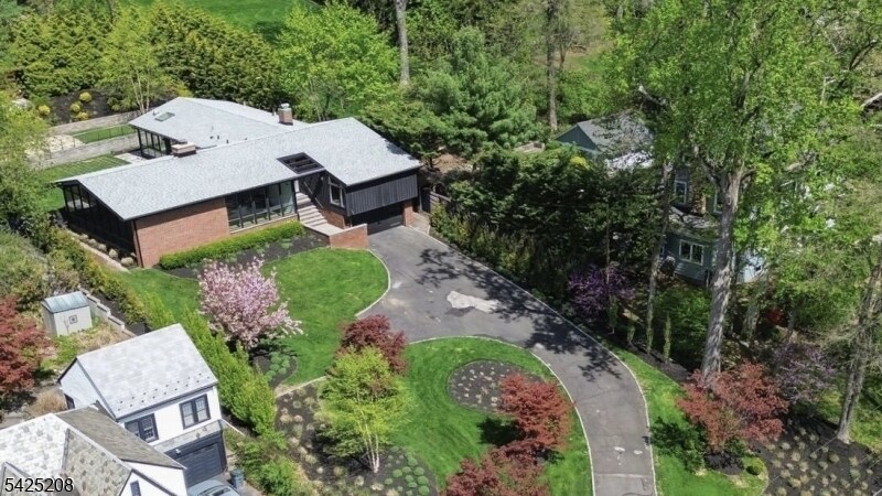 AS SEEN IN ARCHITECTURAL DIGEST. ICONIC MID-CENTURY MODERN WITH CITY VIEWS. A rare opportunity to rent a striking Mid-Century Modern home with sweeping NYC skyline views, just moments (0.7 mile) from downtown Maplewood and direct train access to the city. This 5-bedroom, 3 full bath residence offers a beautifully curated, light-filled layout, highlighted by a dramatic sunken living room with soaring open-beam ceilings, floor-to-ceiling windows, and a statement brick wood-burning fireplace. A chef's kitchen with Wolf and Sub-Zero appliances, custom cabinetry, and quartz countertops flows seamlessly into the main living and dining spaces, ideal for both everyday living and entertaining. The private bedroom wing features a spacious primary suite with sitting area and en suite bath, along with four additional bedrooms, multiple flexible spaces, and laundry. Walls of glass open to a deck overlooking a professionally landscaped, bi-level backyard, culminating in a patio with fire pit and breathtaking skyline views. An exceptional rental offering that combines iconic design, scale, and an unbeatable location.