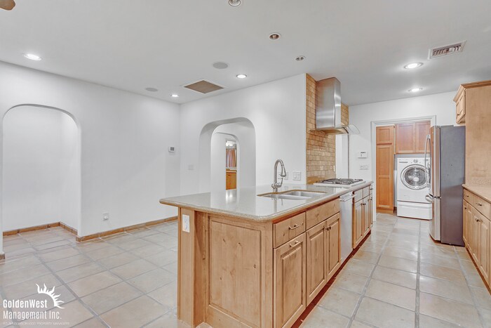 Charming 3Bdm 2Ba Home with Gated Entry and Shaded Driveway in Central Phoenix! This home features a welcoming living room with tile flooring, recessed lighting, and a wood-burning fireplace. The kitchen offers ample cabinetry, countertop space, built-in appliances, and a breakfast bar that flows into the family area. Bedrooms are spacious with tile flooring, ceiling fans, and generous closet space, while bathrooms include dual sinks, granite countertops, and modern finishes. A dedicated laundry room provides added convenience with washer, dryer, and storage. Outside, mature trees frame the front porch and wide driveway, while the backyard includes a covered patio with ceiling fan. This property allows self guided viewing without an appointment. Contact for details.