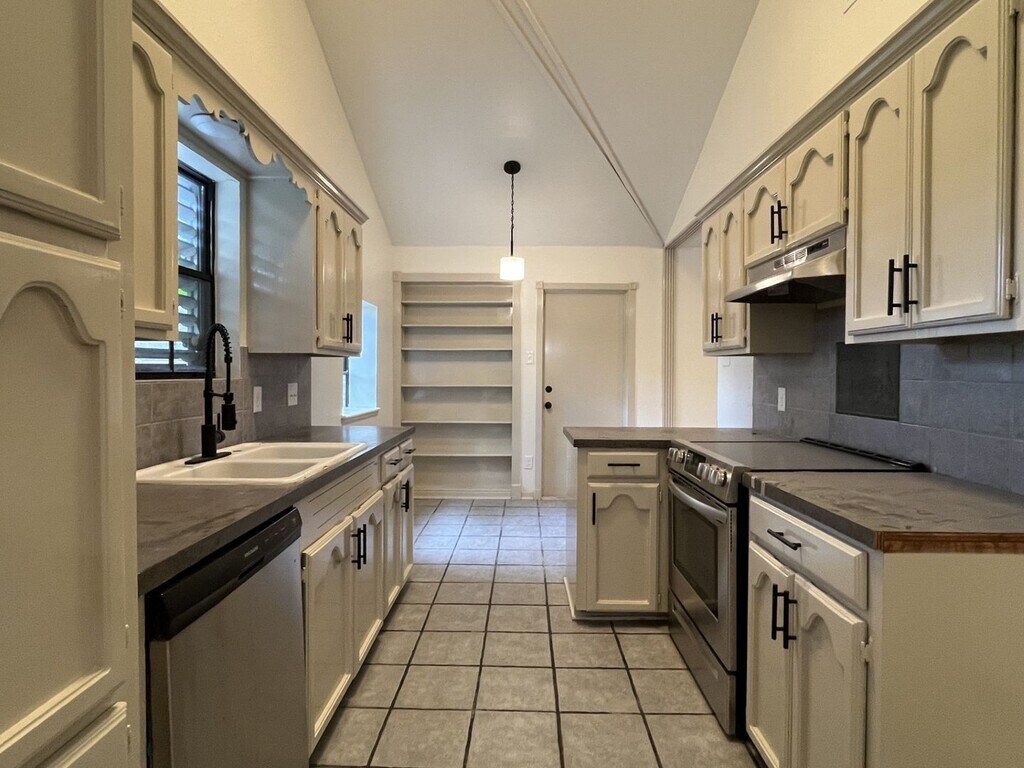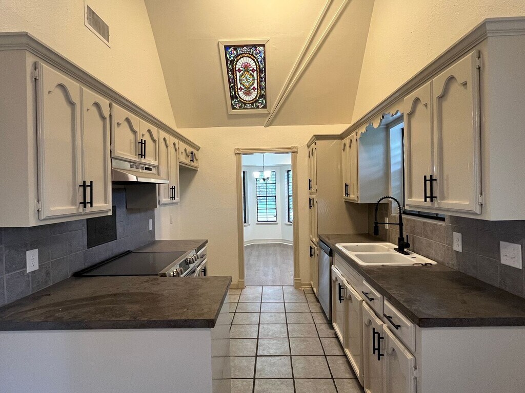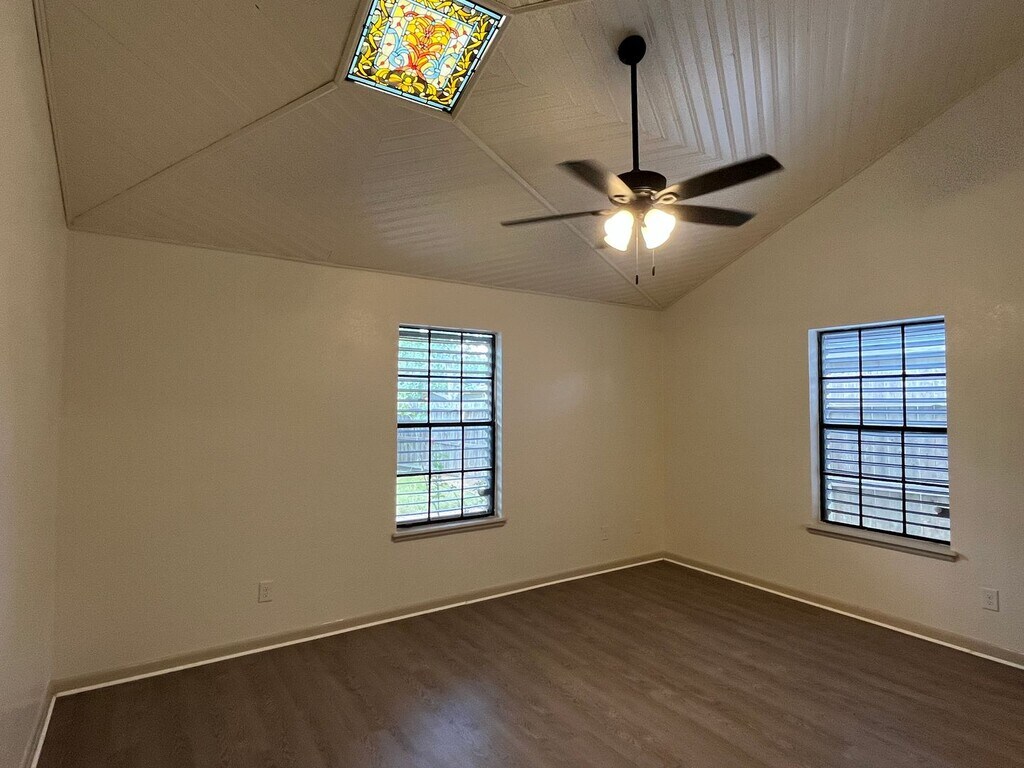 Spacious and updated three bedroom two bath home in the Crestmont Subdivision. Walk into this home and you are welcomed by a small foyer that opens up to the living room with floor to ceiling fireplace and coffered ceilings. Kitchen sits between two dining areas and features freshly painted cabinets, stainless steel appliances, and double basin sink. Primary bedroom with tub shower combination and a walk in closet is tucked away in the back of the house overlooks the fully fenced in back yard. Two bedrooms and a spacious hall bath can be found down the hall. Both bedrooms are a good size and allows for plenty of furniture. Glass stained window details throughout. Quick commute to SPID, parks, schools, restaurants, entertainment, shopping, grocery, and so much more. Call a realtor today to schedule a showing.