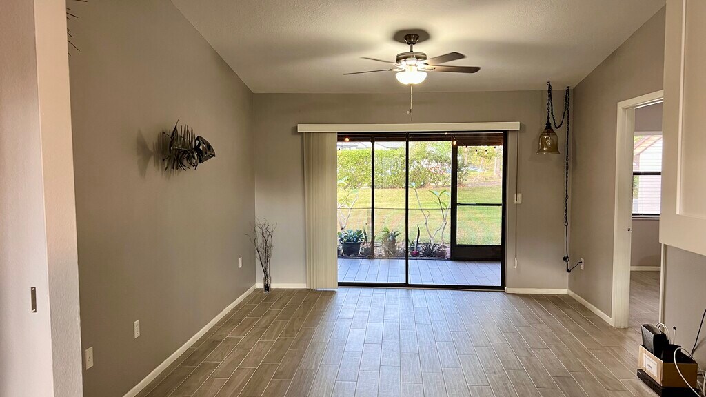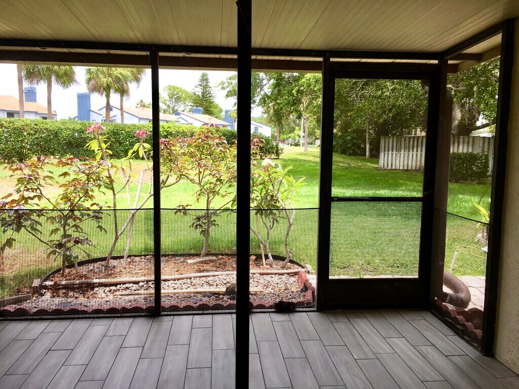 2 bedroom, 2 bath, very clean,upgraded villa in excellent location, available immediately for annual rental. Located in very quiet, safe area, minutes from the beaches, 5 parks/preserves, restaurants and bus line. Medical plaza is right next door with Blake Medical Center within walking distance. The unit is spacious, very clean and bright with cathedral ceiling, big tinted windows and LED light fixtures. Ceramic tile throughout, slide/close kitchen drawers and convenient keyless entry. New AC unit was installed in October 2024 and new water heater in November 2025. The villa is extended by two open air tiled patio areas front and back. Also comes with large storage shed and walk in closet. Designated parking spot, right in front of your entrance door. 2 big screen wall mounted TV sets are available for your use if desired. The guest parking spot is in front of your entrance door. Community pool nearby the condo is available.