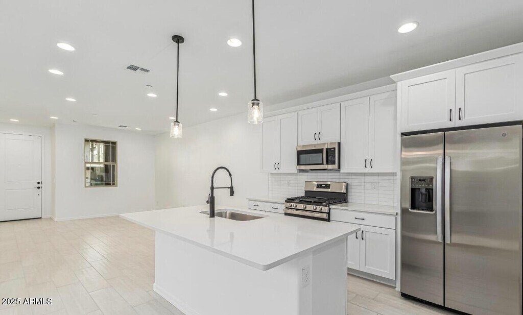FREE OCT RENT!! Move in ready Rental with Quartz countertops,stainless steel appliances (including a refrigerator),a spacious pantry,and a center islandperfect for cooking and entertaining. The open dining area flows seamlessly into a luxurious primary suite featuring an immense walk-in closet and a private bath with cultured marble countertops. Additional highlights include a convenient laundry room,a covered patio,and a 2-car garage,all enhanced by elegant stone tile flooring and ceiling fan prewiring in select rooms. Located just across the street from Heritage Elementary and the community swim park,and only a short distance from Main Street and Verrado Marketplace.