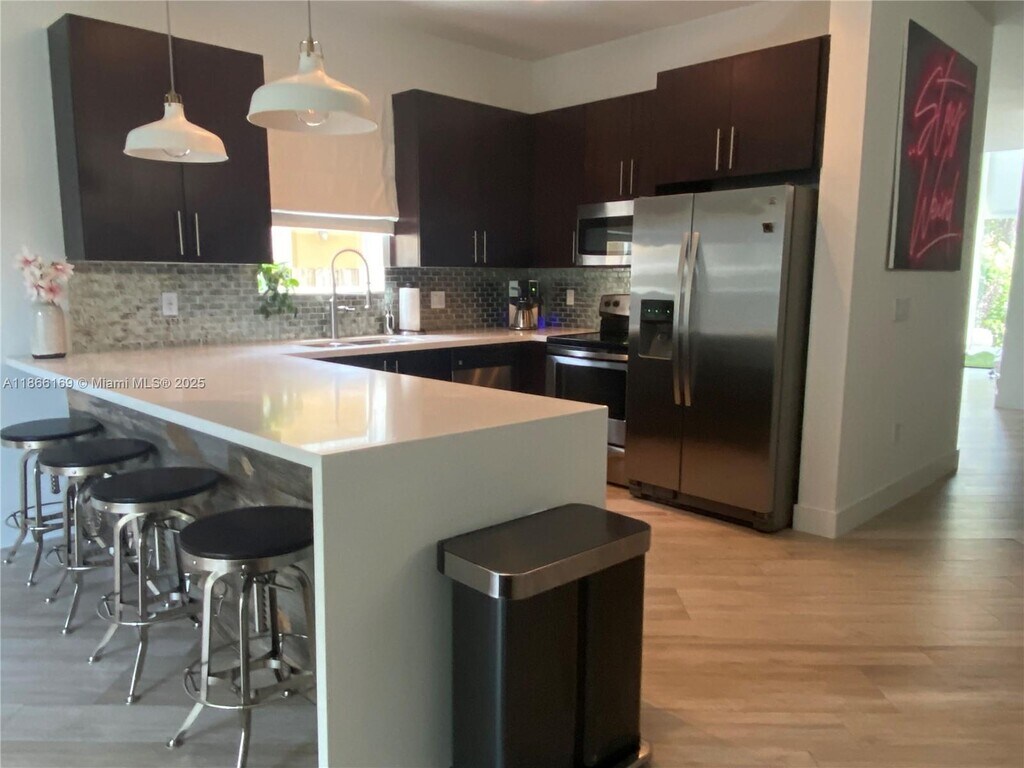 Soaring ceilings, walls of glass, and an open concept create a bright, modern backdrop for Miami living. Centrally located just minutes to Coconut Grove and Coral Gables with quick access to the airport, Miami Beach, Downtown, and Wynwood this stylish residence showcases sleek finishes and stainless-steel appliances. Outside, a private wooden deck turns into your own quiet oasis—perfect for lounging or weekend BBQs. A full garage adds valuable storage and flexibility. Sophisticated, convenient, and move-in ready.