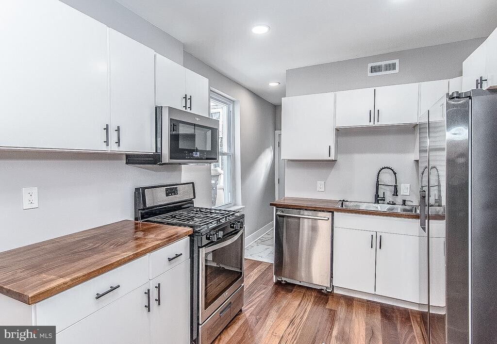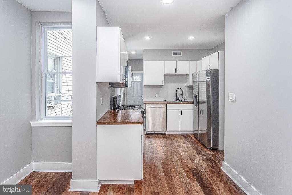 Newly renovated 3 bed 1.5 bath porch front in Port Richmond Hardwood , new doors , new paint , new windows MOVE IN READY washer/dryer . Full unfinished basement. Central Air .