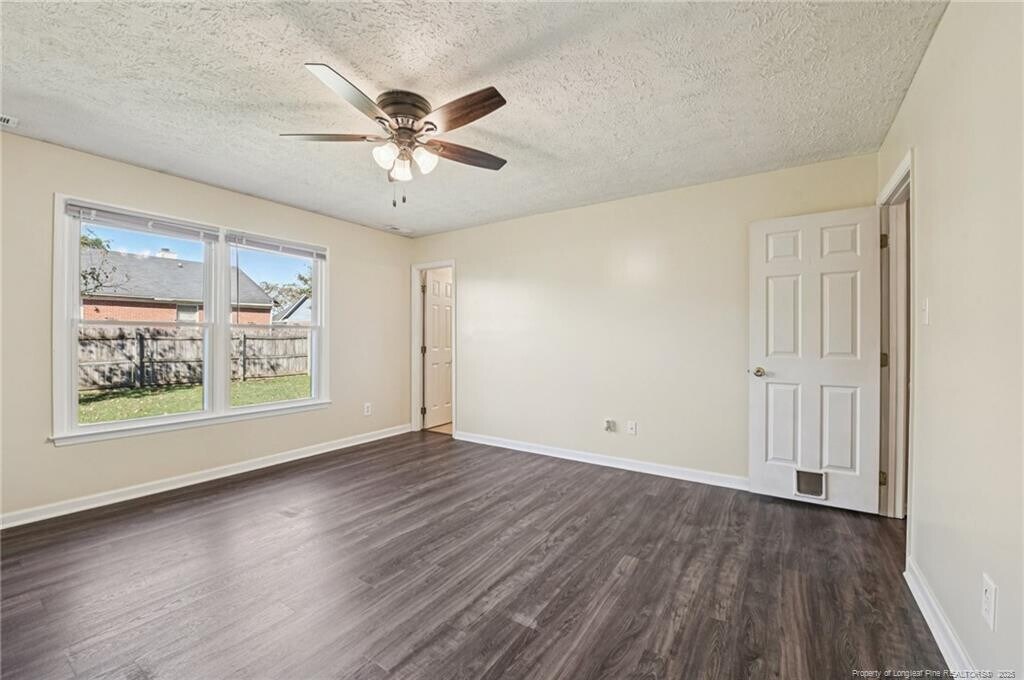 Welcome home to this lovely 3-bedroom, 2-bath ranch featuring a spacious open layout and thoughtful touches throughout. Enjoy a large great room with cozy fireplace, perfect for relaxing or entertaining. The eat-in kitchen is nicely equipped with range, refrigerator, and dishwasher, making meal prep a breeze. Retreat to the generous primary bedroom with ample space for a king-sized bed and more. Additional features include blinds, ceiling fans, a double garage, and a fully fenced backyard offering both privacy and room to play. Conveniently located near Fort Bragg, gyms, and shopping. Pets welcome with non-refundable pet fee (breed and number of pets restrictions apply). Don’t miss this opportunity—schedule your showing today!