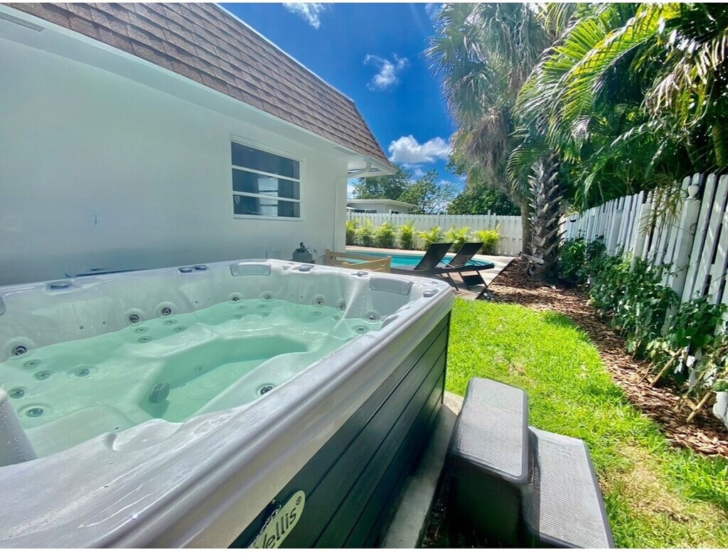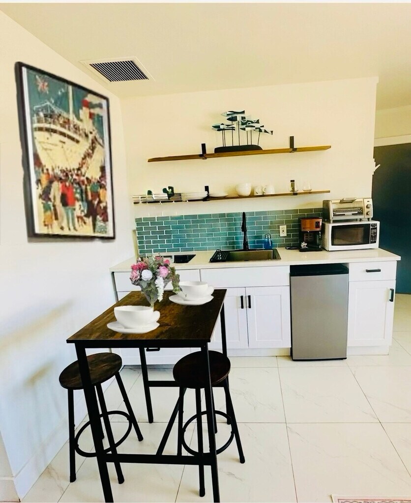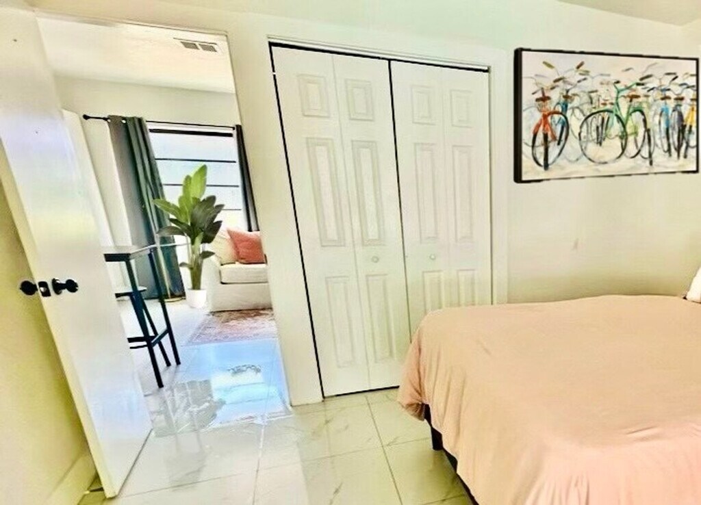 Feel at home in this private suite oasis located in vibrant Wilton Manors. This spacious retreat features a private entrance. The home boasts marble floors, a comfortable queen bed overlooking the pool, as well as a kitchenette. Guests are welcome to use the full suite, and laundry access is located in the garage with an entrance on the opposite side of the home. Enjoy the shared pool and jacuzzi. Dedicated parking is included. Just minutes from the beach and steps to Wilton Drive’s shops, dining, and nightlife, this suite is ideally located for comfort, privacy, and South Florida sunshine in a prime location. This mother-in-law suite is attached to the main home, which is occupied. [SI]
