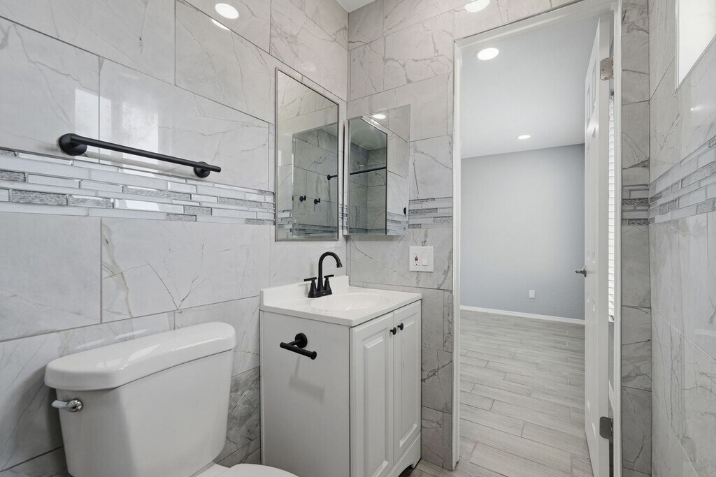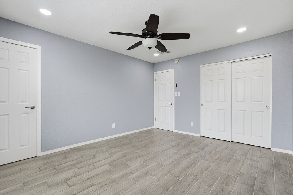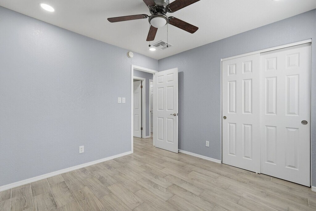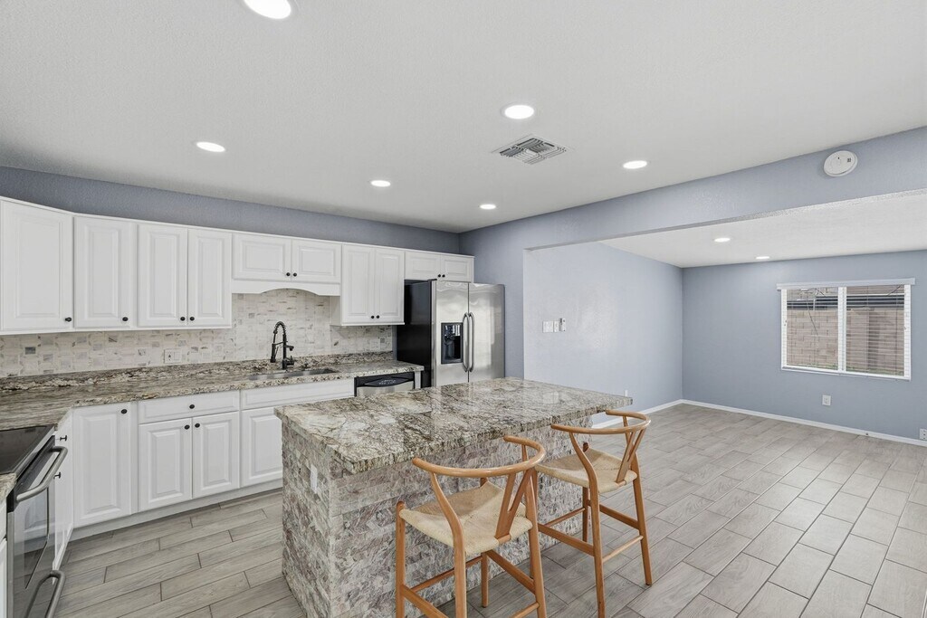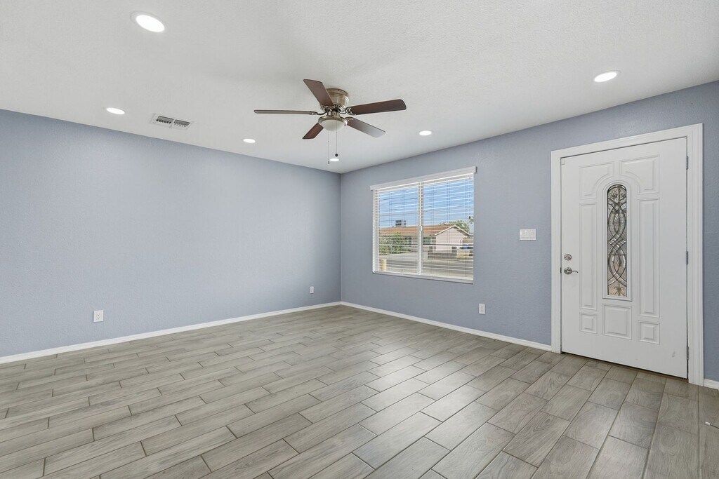 Wood plank tile throughout home* Recessed lighting and. upgraded ceiling fans* Raised panel doors* Blinds on all windows* Island kitchen with slab granite countertops* Single basin sink with upgraded faucet* Stainless steel appliances* Breakfast bar* Custom tiled bathrooms with upgraded fixtures* Grassy front and backyards with pavered patio* Attached 1-car garage* Block fence* Pets accepted with $50/mo per pet, plus $350 deposit per dog, $350 fee per cat, $195 admin fee