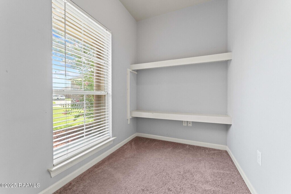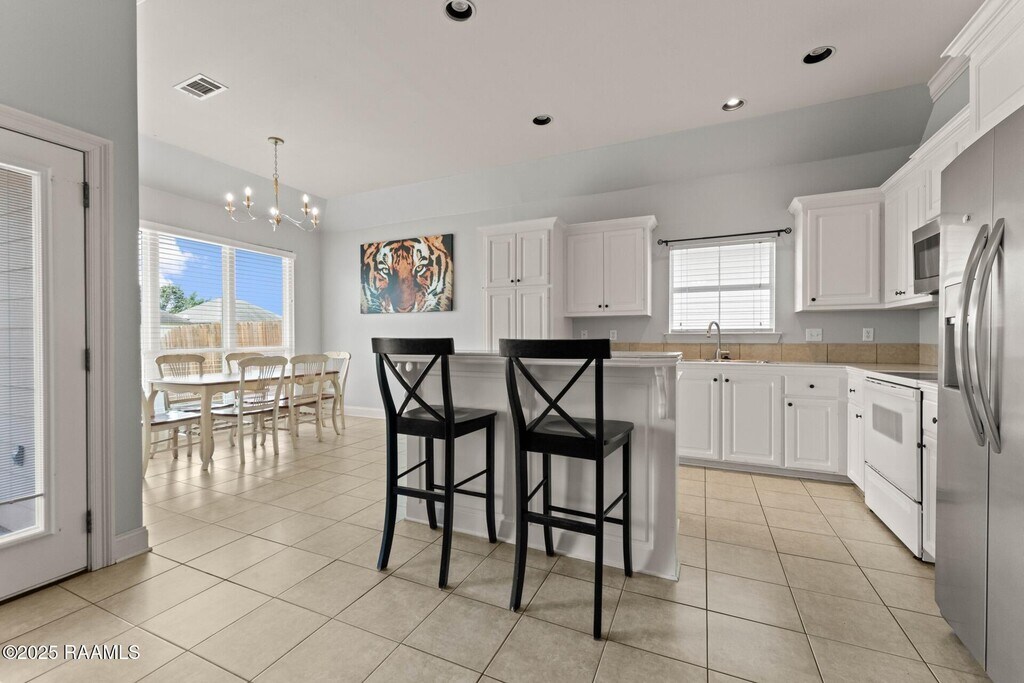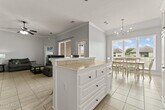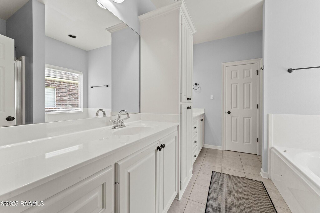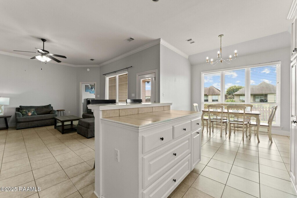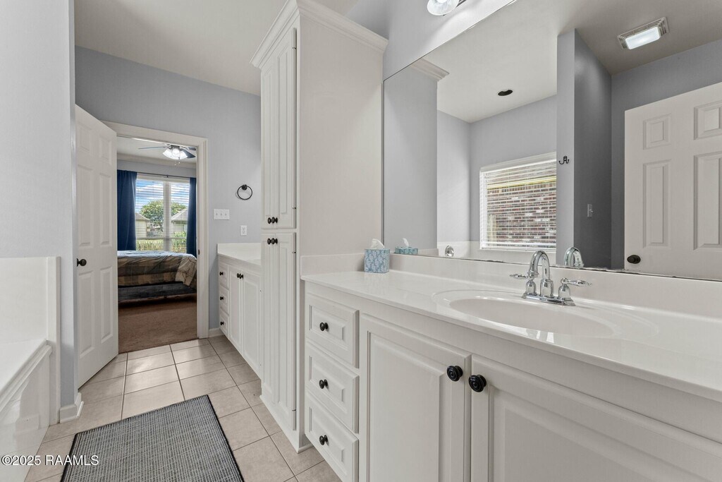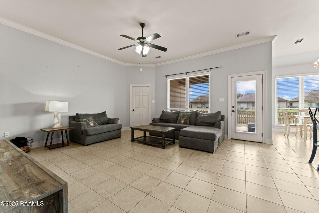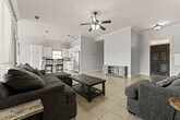 This well maintained home has an open floor plan and sits on a lake that has great views from the master bedroom, living room and kitchen. The home has 9' ceilings and lots of natural light. The kitchen includes a large island and ceramic tile floors and countertops, along with lots of storage. The master bedroom has a large walk-in closet and a bathroom with his/her vanities and a jetted tub and separate shower. The other side of the house are the other 2 bedrooms which share a hall/guest bath. There is also an extra room off the foyer which could be used as an office or playroom. These is a separate laundry room and a 2 car enclosed garage. This home is not in a flood zone. This will not last long.